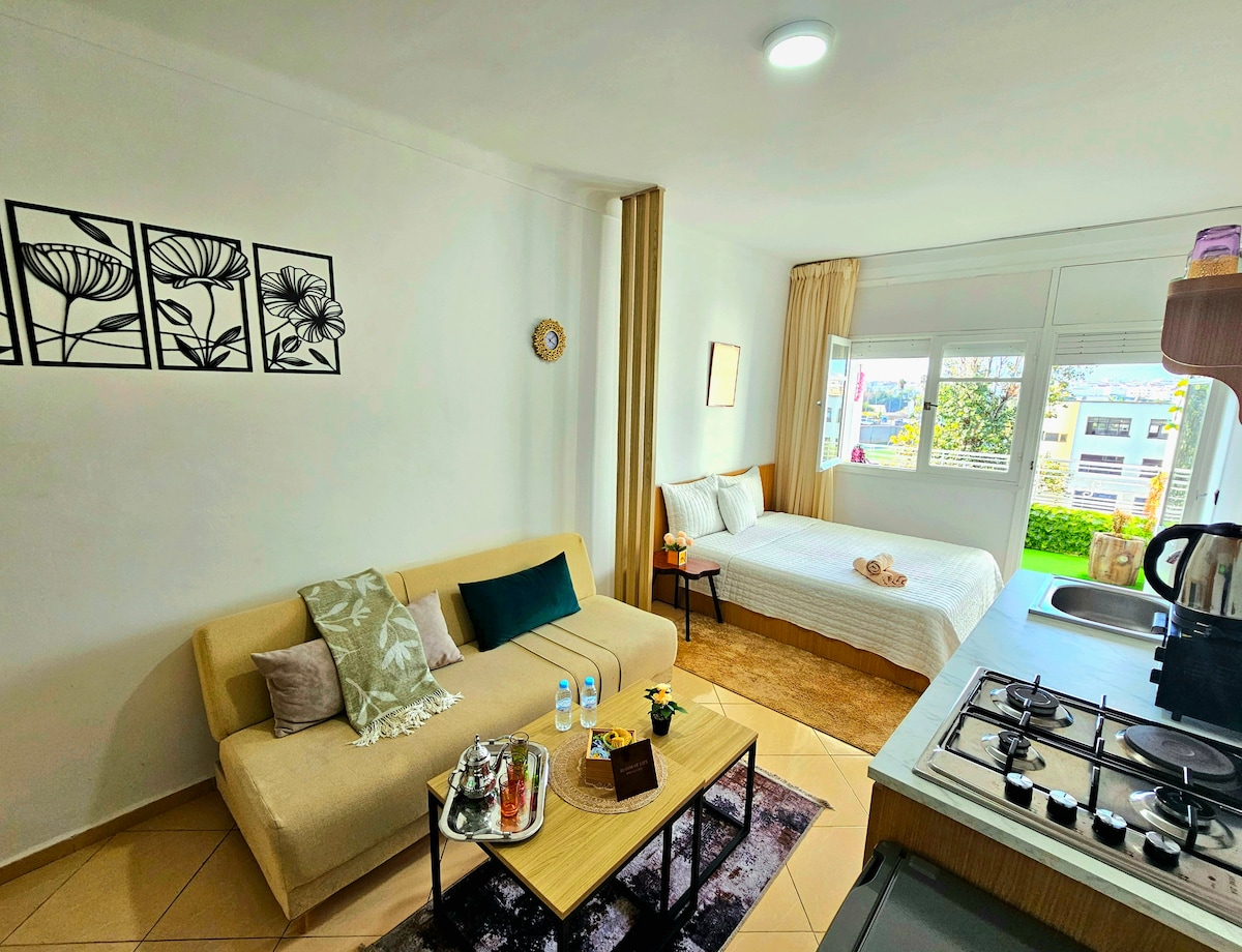 Enjoy a stylish experience at this centrally-located place. Peaceful with a very cozy style. This accommodation will charm you with its tranquility and decoration! Freshly renovated by us, it will meet all your needs with its complete equipment! Its central aspect, well located at kilometer 0 of the capital, will help you discover the beautiful city of Rabat very easily and to explore all its little facets with peace of mind!