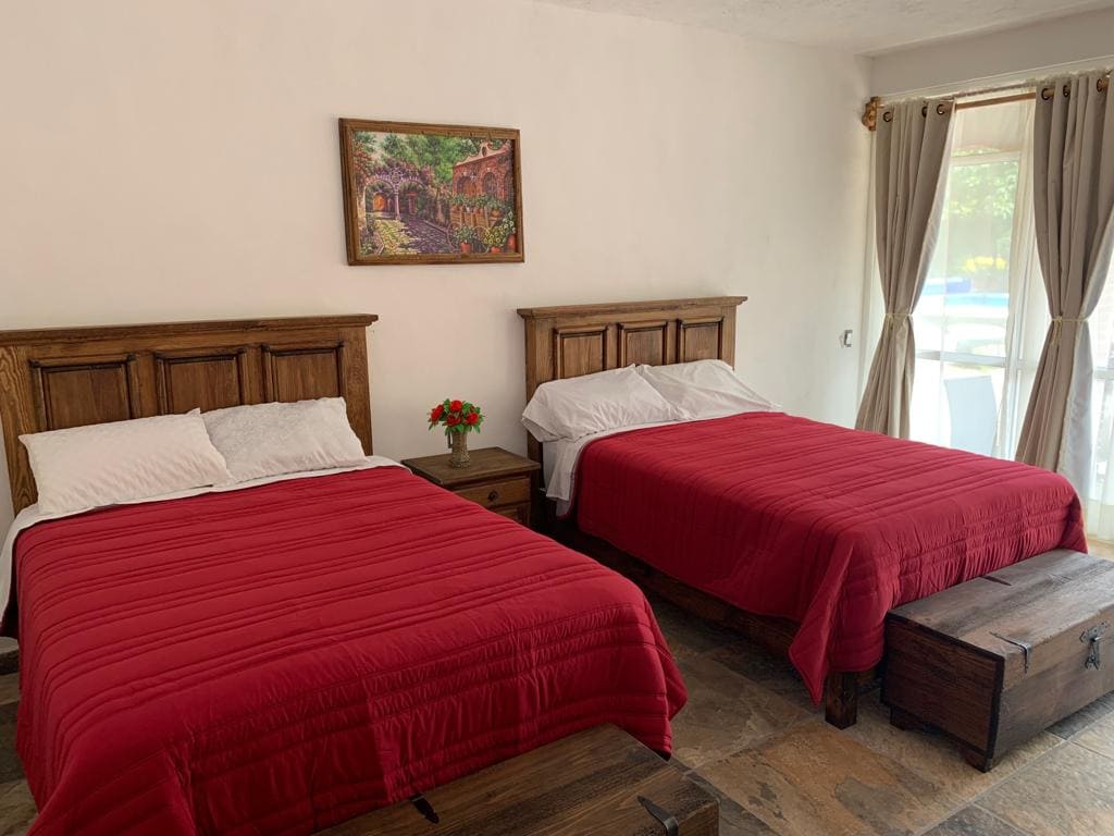 Espacio amplio y artístico. Con dos camas matrimoniales muy cómodas, es perfecto para descansar en pareja, con amigos o en familia. El lugar combina arte y calidez para que te sientas como en casa. Ubicado en zona céntrica, tendrás fácil acceso a transporte, comercios y eventos. Ideal para viajes de trabajo, visitas familiares o escapadas de fin de semana. ⚠️ Reserva para el mismo día sujeta a disponibilidad ⚠️Mencionar hora estimada de llegada ⚠️Indicar numero exacto de personas en la reserva