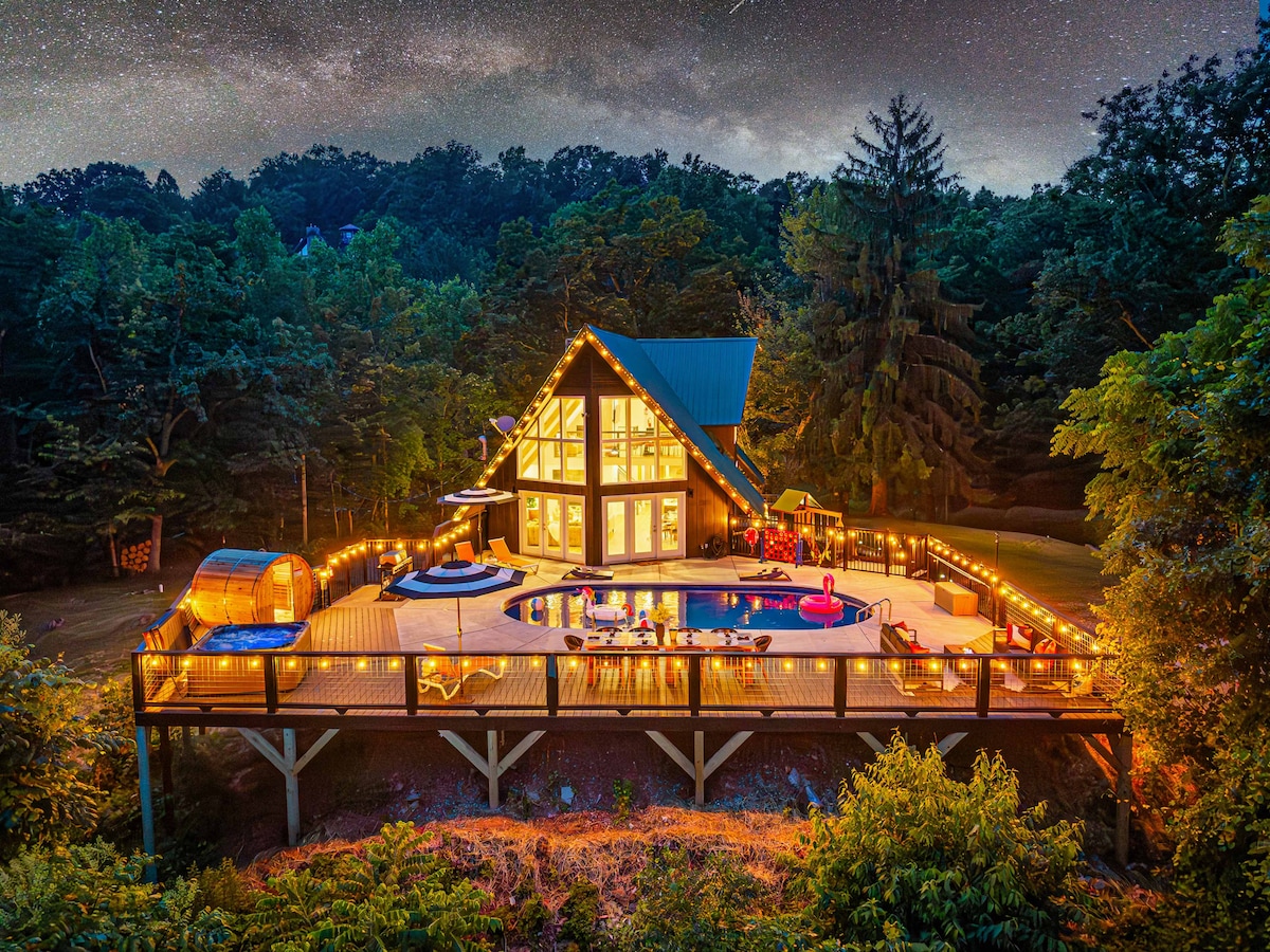 Splashtastic Cabin Indoor Pool + Outdoor Fireplace