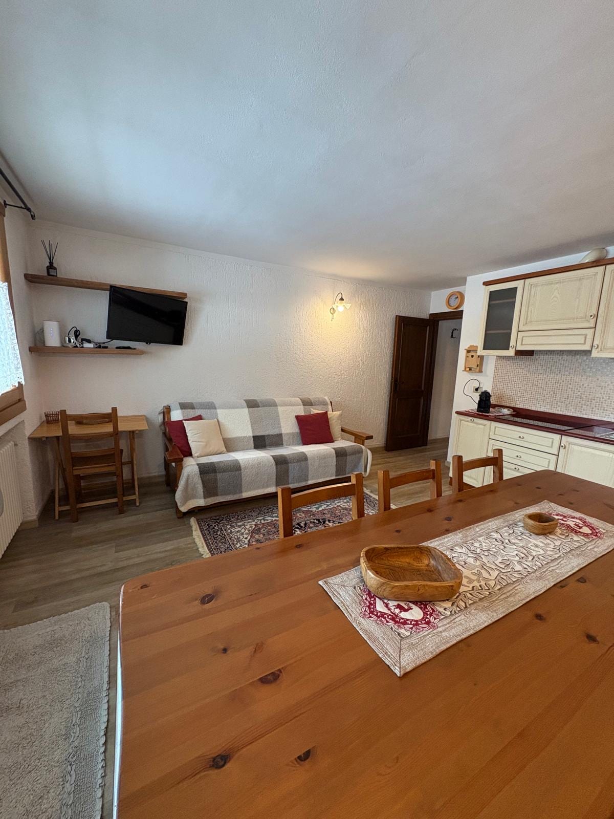 A cozy and traditional mountain style intimate apartment in the hearth of Livigno, a comfortable and quiet bedroom , 1 private bathroom apartment in via Pontiglia. Close to the centre of the town, bus stops, pharmacy, and at walking distance to any necessities such as restaurants, shops, etc, great view of the mountains. Has a private kitchen, fast and free Wi-Fi. Pet-friendly (dogs below 25lbs). Utilities included: protected parking space, especially useful during colder months.
