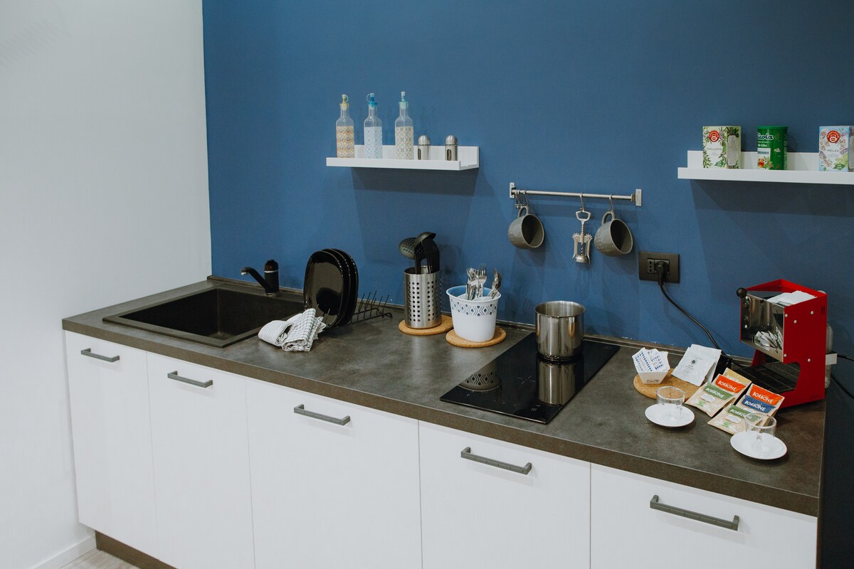 A mix of modern and ancient style for you who will come to visit me. Convenient location for those arriving from the airport. Just take the train to the Terlizzi exit and in a short time you can get to the property that is located a stone's throw from the station exit, a cost of 5 euros. In the neighborhood you are spoiled for the choice of Castel del Monte, Trani, Bari a la magica árbolbello puglia is beautiful. I'm in love with it. I hope to infect you