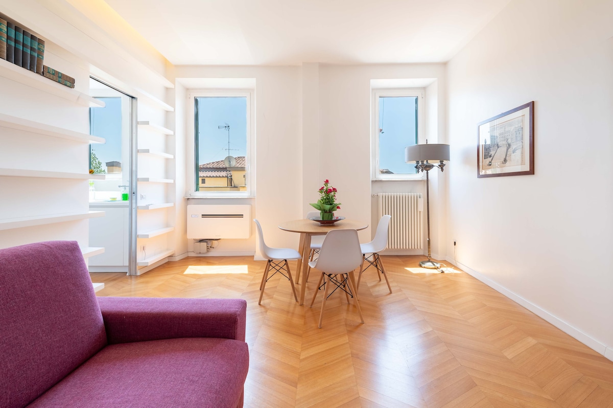Appartamento elegante, finemente arredato, adatto a famiglie e coppie in posizione centrale. Piano alto con ascensore, con vista sui caratteristici tetti di Roma, situato in un complesso residenziale di inizio '900, adiacente al fiume Tevere. L'alloggio dista 15 minuti a piedi da Piazza del Popolo , è adiacente allo Stadio Olimpico, Auditorium Parco della Musica e Teatro Olimpico.