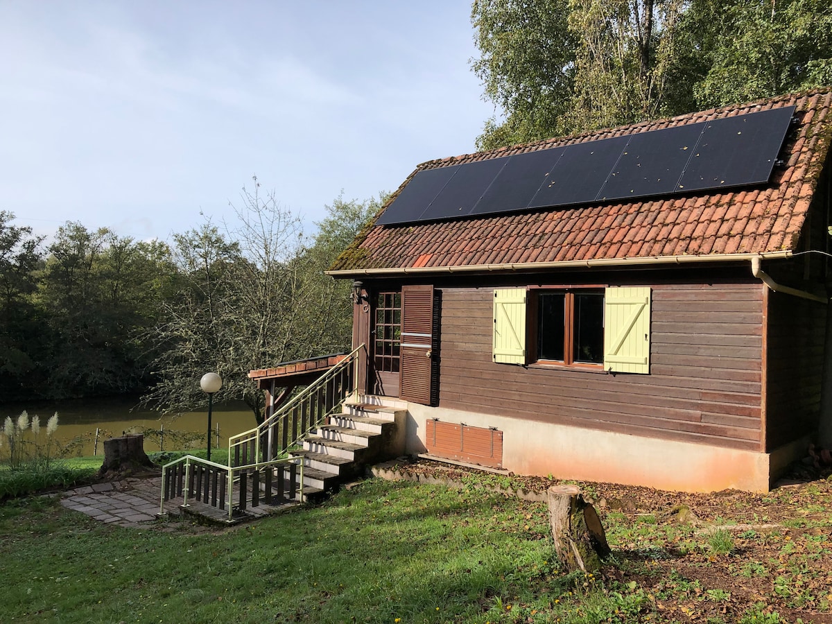 Lodge nestled in a natural setting to ensure relaxation and tranquility. Designed with quality materials in the Scandinavian style, it is fully equipped for your comfort. Two large bay windows offer stunning views of the pond and surrounding nature: an immersion in the heart of the local fauna and flora for a totally exotic stay.