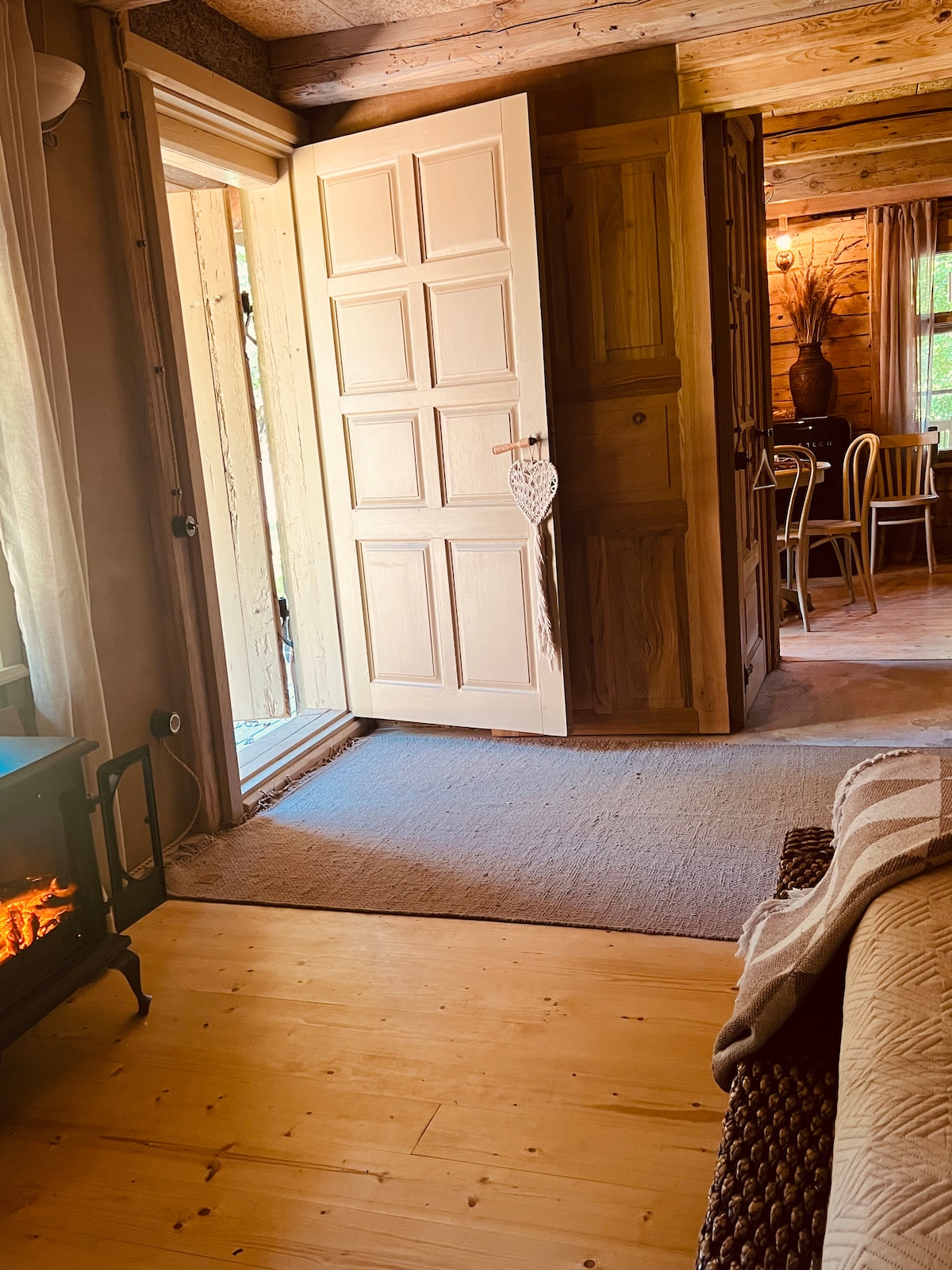 The holiday cabin "Skudriņas" is a great place to escape to the quiet of nature, away from the hustle and bustle of the city. The cabin is a refuge of peace and tranquility, where on hot days you can swim in the pond and enjoy grilled food in the gazebo, while on cooler days you can gather in the living room by the fireplace or in the hot tub. For outdoor relaxation: The hot tub is available for an additional fee of 60 EUR (10 EUR for each additional day it is heated with wood).