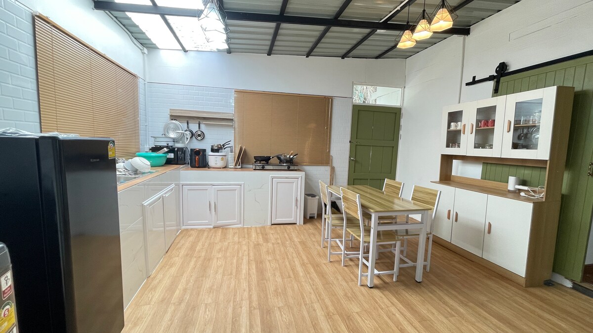 Private house offering with full facilities of kitchenette, Wifi, Parking up to 2 Cars or 1 Van, Just 2 kilometers to Wat Thatpanom, Easy access to the Market, Transport station