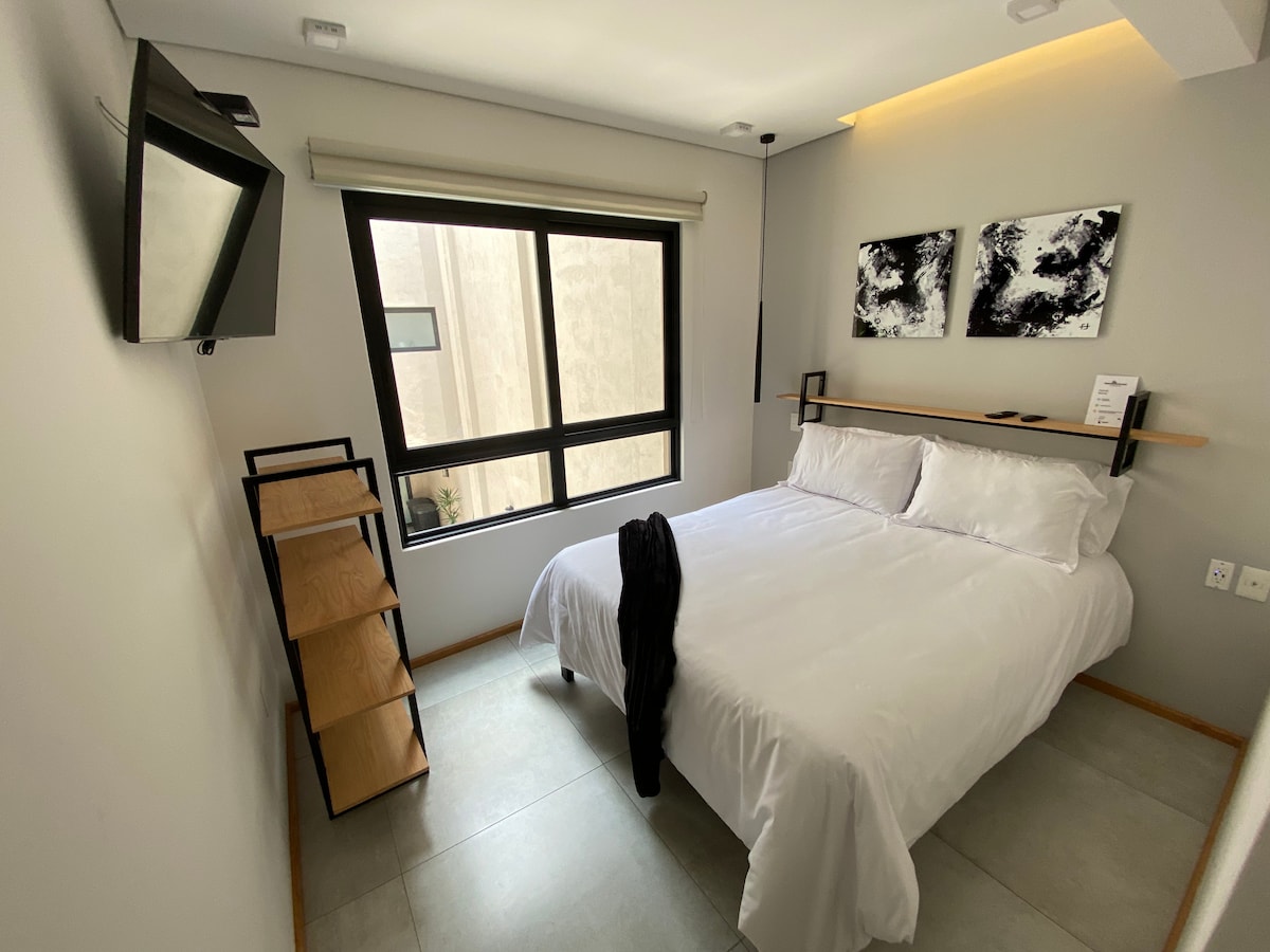 A small loft recently remodeled, located a few steps from Paseo de la Reforma and Av. Insurgentes. It is 15 minutes from the CAS, 10 minutes from the Angel of Independence. Close to corporate and iconic tourist areas of the city. Excellent space for working remotely, it has high speed internet.