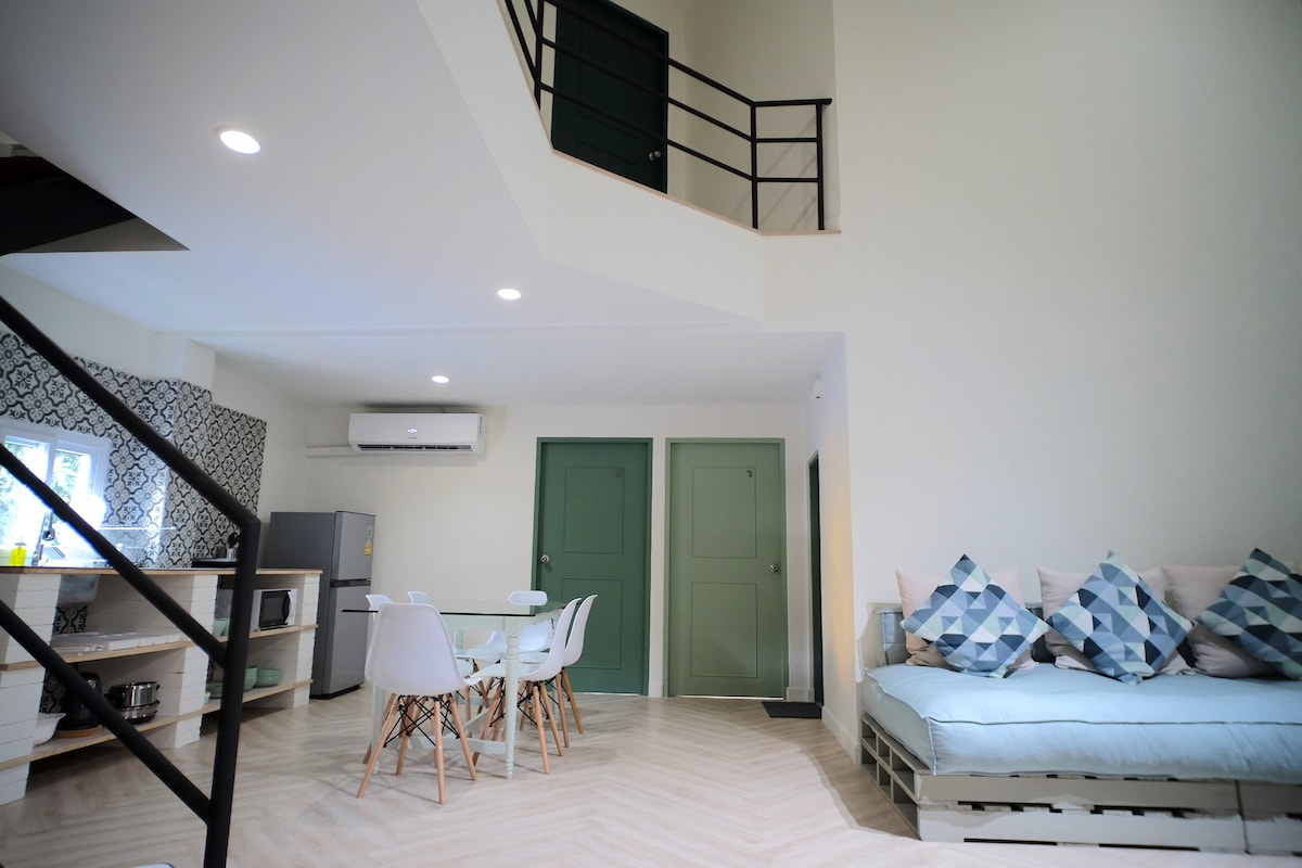 Our spacious (68 sq.m.) room is newly renovated and comes with all the amenities you need. Situated in the heart of Bangkok amidst upscale hotels, it offers easy access to Thailand's top attractions. Just a short 6 mins walk from Sapan Taksin SkyTrain Station, 1 min walk to convenient store, 4 mins walk to department store, our location is incredibly convenient, with renowned dining options, the bustling business district, and popular tourist spots nearby. *There is NO pool and gym for guest*