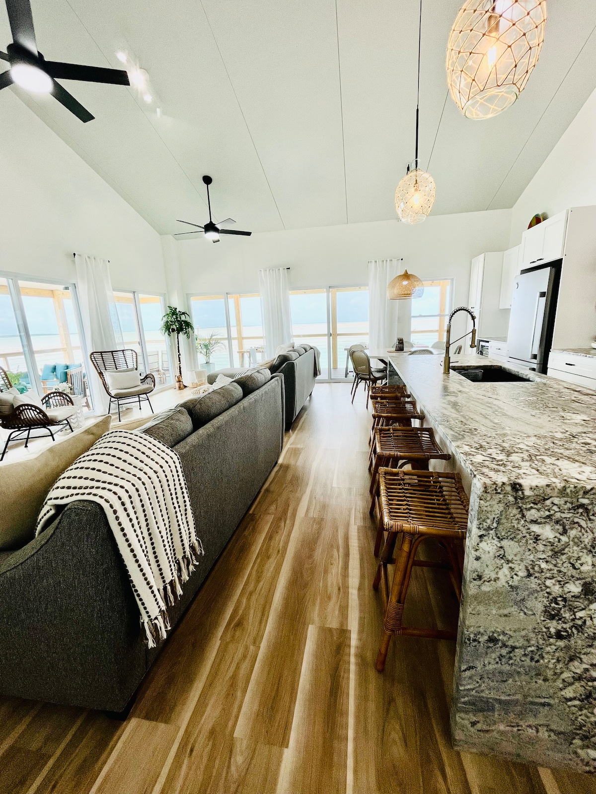 Oceanfront property just remodeled in 2021. Walk right out your backdoor and into crystal clear water. Snorkeling, paddle boarding, kayaking, reef fishing, bone fishing and more can be experienced steps away from your home. The house is bright and full of space. 4 bedrooms and 2 full bathrooms. Expansive 12'x60' porch with full set of outdoor furniture and Weber gas grill to sit back, relax and enjoy the views.