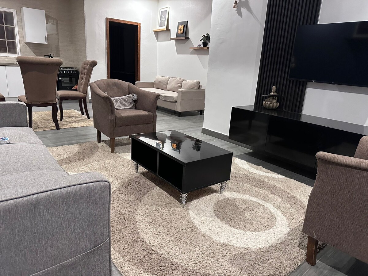 This stylish place to stay is perfect for family trips. Fully furnished with all appliances to suit your convenience. About 5 minutes' drive from the beach. Less than 15 minutes' drive to Senegambia area. Peaceful, quiet and family friendly neighborhood. Fully gated and secured to ensure full privacy. Stable electricity and backup generator.