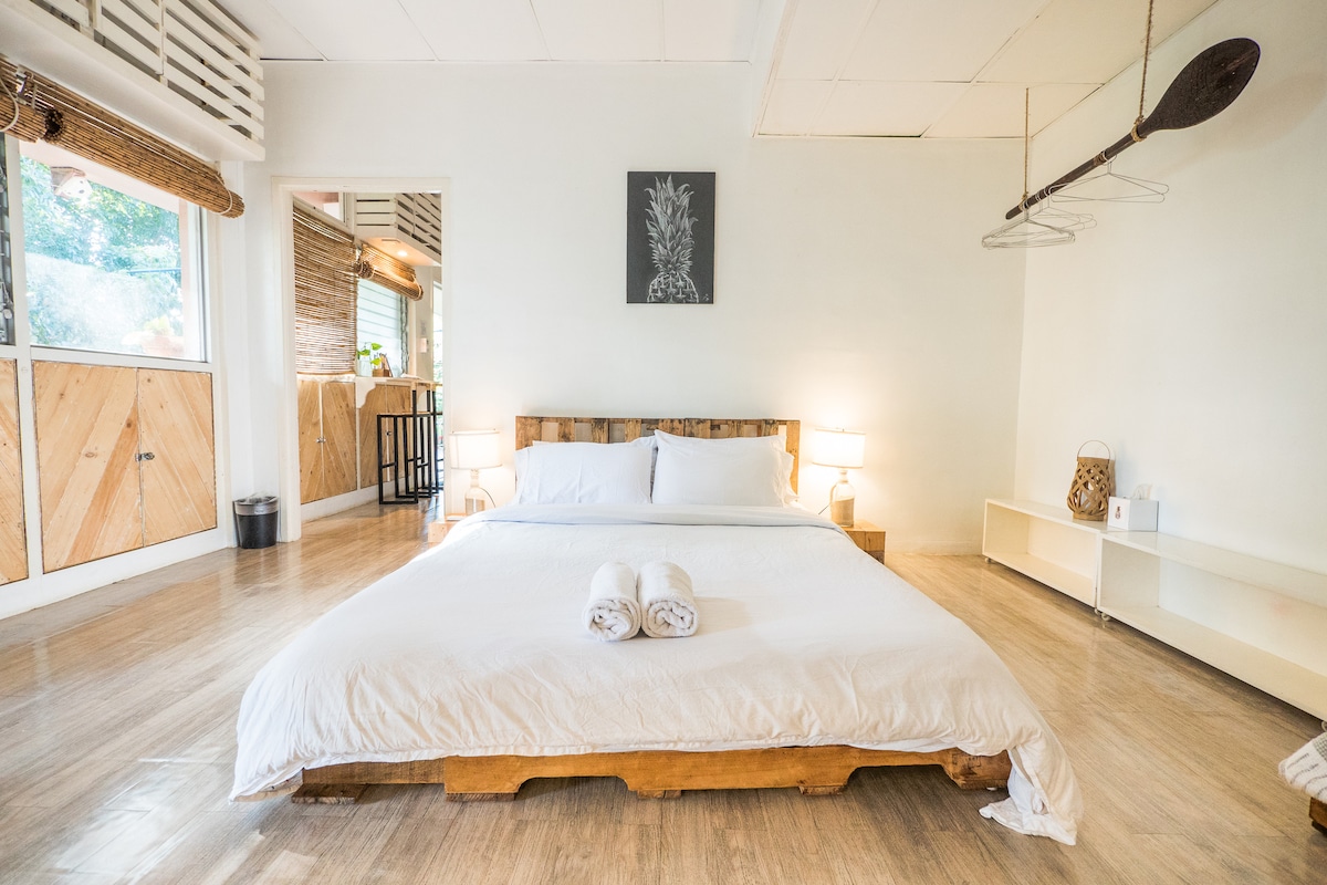 For today’s explorers and adventurers, Jiva Nest is your perfect 16 square meter hideaway on the 1st floor of an old US Navy house in Lower Cubi. 45 mins from Clark airport, 20 mins to the mall, 15 mins to the beaches and 10 mins to the waterfalls. NOTABLE FEATURES: >Ultra-comfy bed >Fast WiFi + StarLink >Hammock >BBQ grill >Kitchenette >Workspaces >Books & games >Bamboo bikes for rent >Green roof access >CCTV, 24hr security >Dedicated parking >AC >Pool Access* >Pet-friendly* *Fees apply