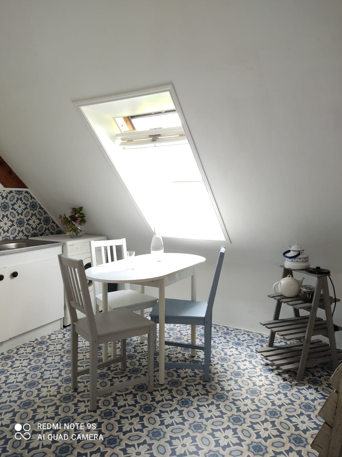 17 m2 studio on the 1st floor in the heart of St-Lô, close to all amenities and services. It is quiet, facing south with a shared terrace Essentials: -draps and towels -Dishes -micro-wave -frigo - kettle - WiFi - free parking in the blue zone in the street (2 hours), possibility of free and unlimited parking further away (no parking in the cul-de-sac). It is 800 m from the train station (10 min walk) Access to the A84 motorway off the city.