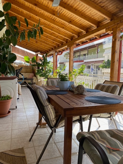 Your family will be close to anything you may need in this 3rd floor΄s appartment. It combines the spaciousness and extroversion of a large porch at the penthouse with the serenity of a street 100m from the 2nd busiest commercial market in town. You can park on the street or in a free outdoor municipal parking 200m. far. The distance from the ring road is 1Km, from the nearest bus stop 100m , from the centre of the city 4Km and from Paok Stadium 300m. Also there is an elevator.