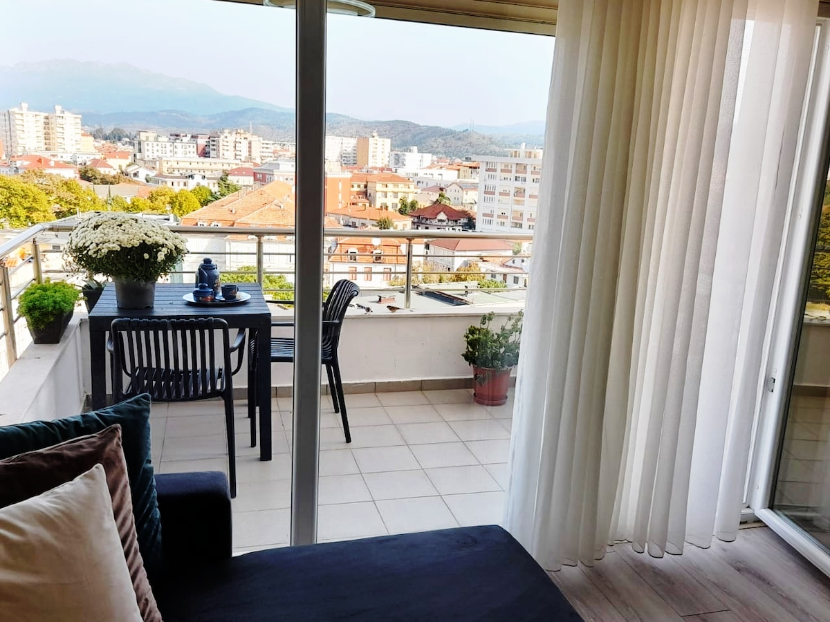 - Ampio appartamento con balcone vista 180 gradi sul centro città di Shkodra in uno dei più recenti palazzi del paese. - L’appartamento è formato da un ampia zona giorno luminosa con angolo cottura e accesso allo sfogo esterno, 1 grande bagno e 2 confortevoli camere da letto. - Situato in posizione strategica, a pochi passi dal centro e dalla stazione degli autobus e taxi, accanto al Teatro Migjeni. - La casa è stata ristrutturata recentemente con accogliente arredamento.