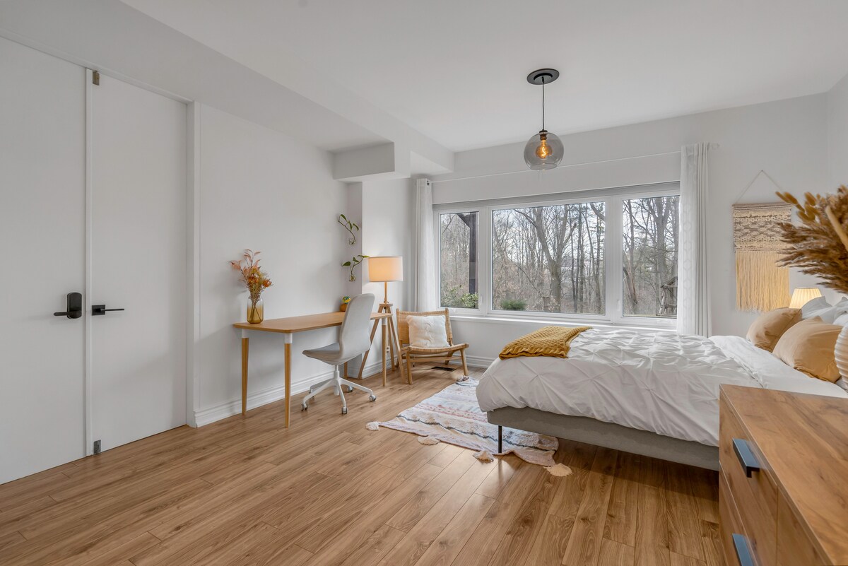 Fully renovated, modern, Bright, luxurious, and spacious ( over 1800 sq/ft) 2-bedroom, 2-bathroom high ceiling above ground apartment, separate entrance, and Patio for your next cozy home away from home! 5-star rated and top 5% of homes in AirBnB! As central as it gets in the GTA. You'll be close to Pearson Airport, Highway 401/404/407, shopping malls, grocery stores, and an array of trendy restaurants, movie theaters, parks, and bicycle/ hiking trails all around Book With Confidence!