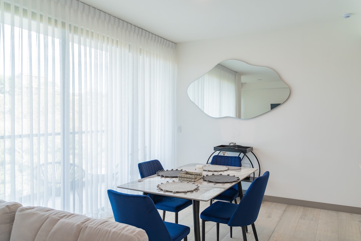 Enjoy the most beautiful view of the Sabana skyline as the sun sets from the luxury of our 16th-floor apartment in the newest and most equipped tower in Sabana. Relax in this peaceful setting, where you can watch and hear the river and its birds from the boho chic style balcony while surrounded by nature, just a short stroll from Sabana Park in San José, ten minutes walking from a grocery, and 15 minutes driving from the airport. Discover our apartment's elegance, smart appliances and design.