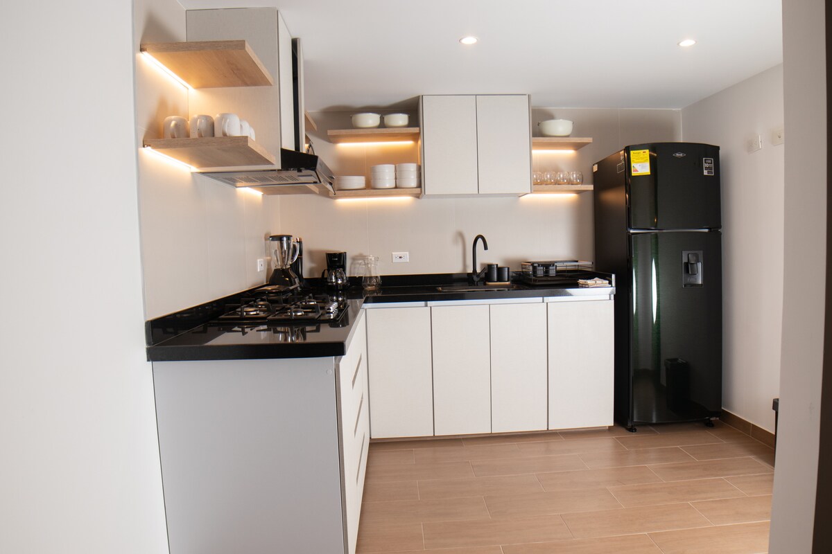 Discover La Violeta, a rustic apartment in Tibasosa with spectacular views. Only 400 meters from the main park, 59 kilometers from Lake Tota, 2 kilometers from Guatika Park. Ideal for groups of families or friends. 2 bedrooms, 2 bathrooms, living room with sofa bed and fireplace, equipped kitchen, Wi-Fi, TV and parking. Enjoy the tranquility and privacy, nearby viewpoints. Pets are welcome. Enjoy a unique experience in this refuge surrounded by nature and local cuisine. Book now!