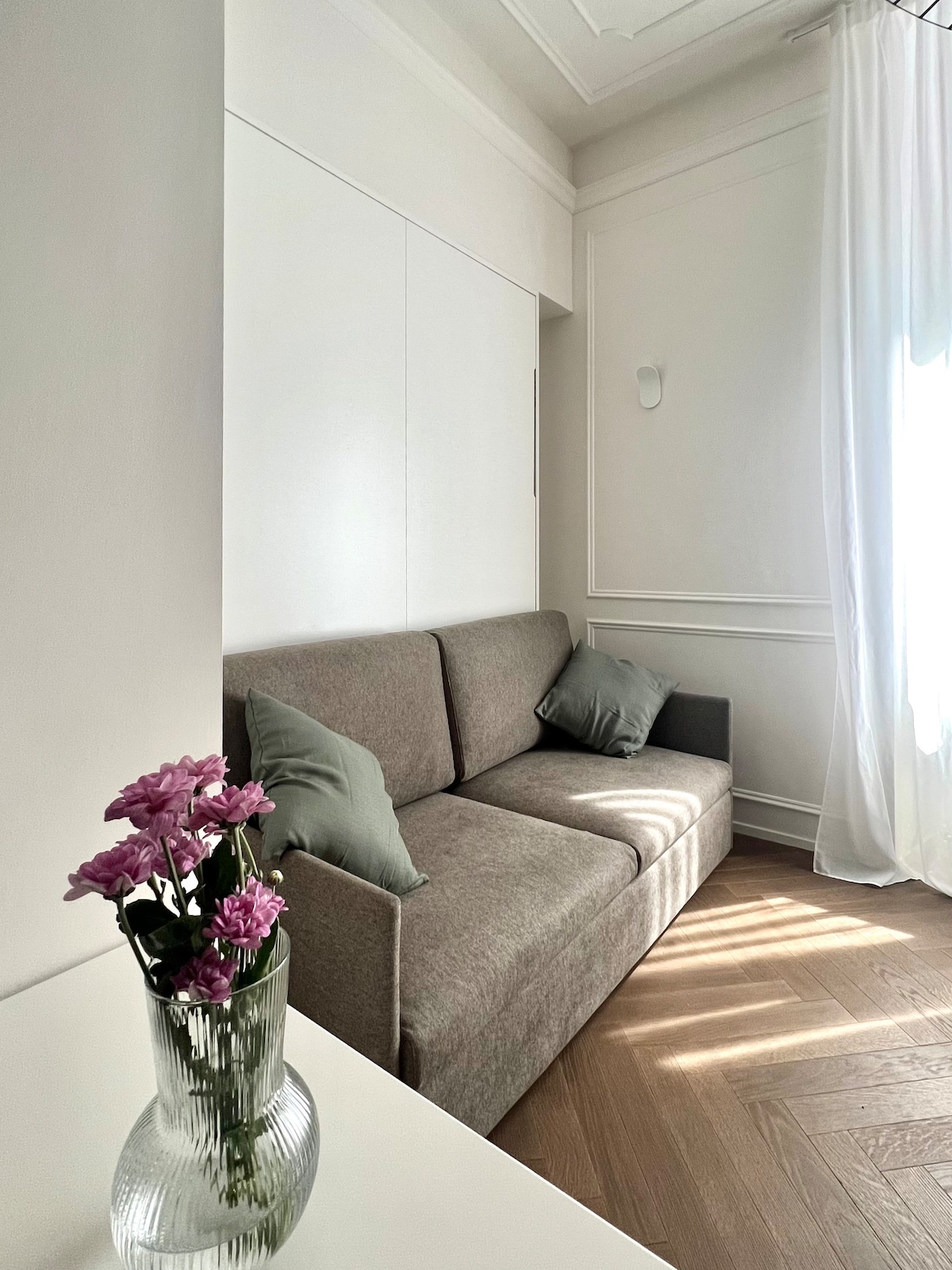 Enjoy a peaceful, stylish experience in this cozy, central apartment. The studio is located just 300m away from the DE ANGELI metro station, on the 5th/top floor of an elegant, century-old building, equipped with a lift and concierge, recently renovated and finely furnished. The property, very bright, welcoming and quiet, accommodates up to 3 guests and is rented sanitized and fully furnished. Wonderful location: bars, restaurants, supermarkets, car parking.