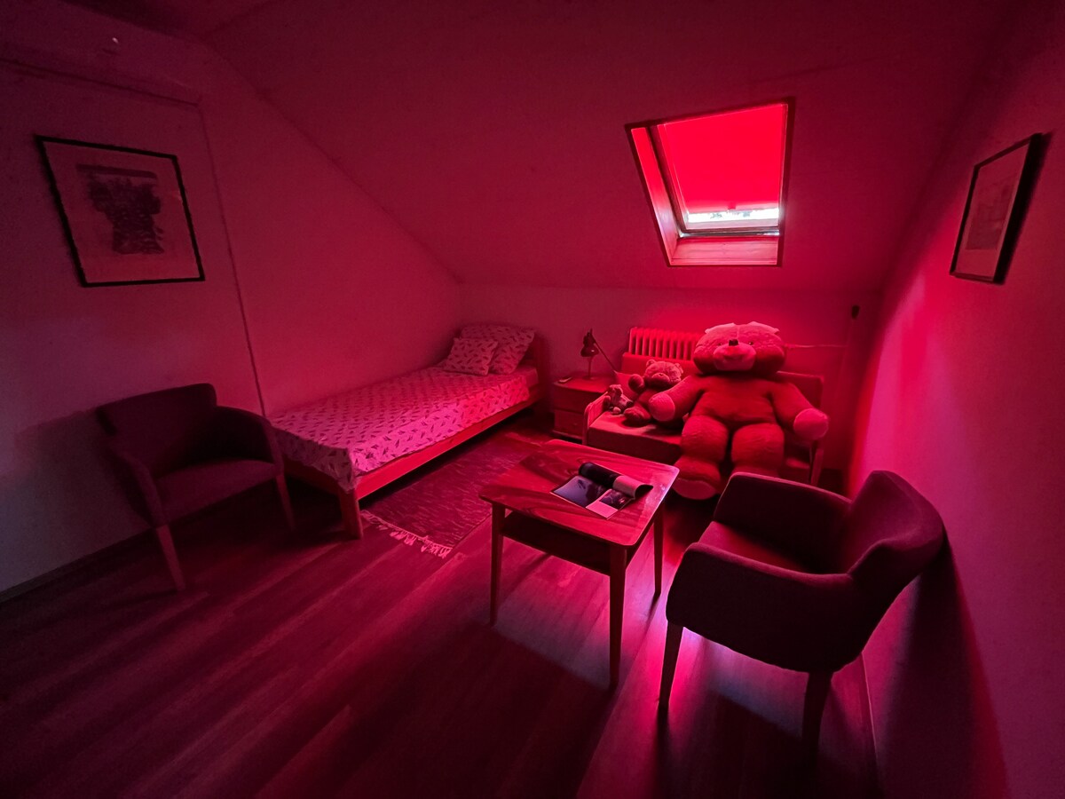 R- Guest House is a big family house in the centre of Balatonfüred in a silent street yet very near to the railway station, bus terminal. Lake is cc 1 km, an easy 15 minute walk, with car 4 minutes. The 2. level of the house is entirely for the guests during the tourist season. We offer it for families, small groups of friends , we do not accept peoples alien to each other. 2 big rooms, 1 smaller, eight beds, big balcony , nice panorama, kitchen corner. Free use of garden, parking.