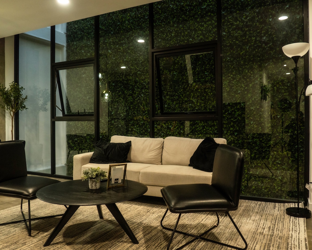 Elegant loft with concrete walls, steel beams, and wood finishes, and a botanical atmosphere painting a fresh and industrial style. In the bedroom, enjoy a huge view of Tijuana's most historic street. Head up to the rooftop to enjoy a concert and street views by a campfire. 24/7 security and card-only access. Experience Tijuana's most central location where clinics, supermarkets, bars, restaurants, and cafes are less than a 5-minute walk away.
