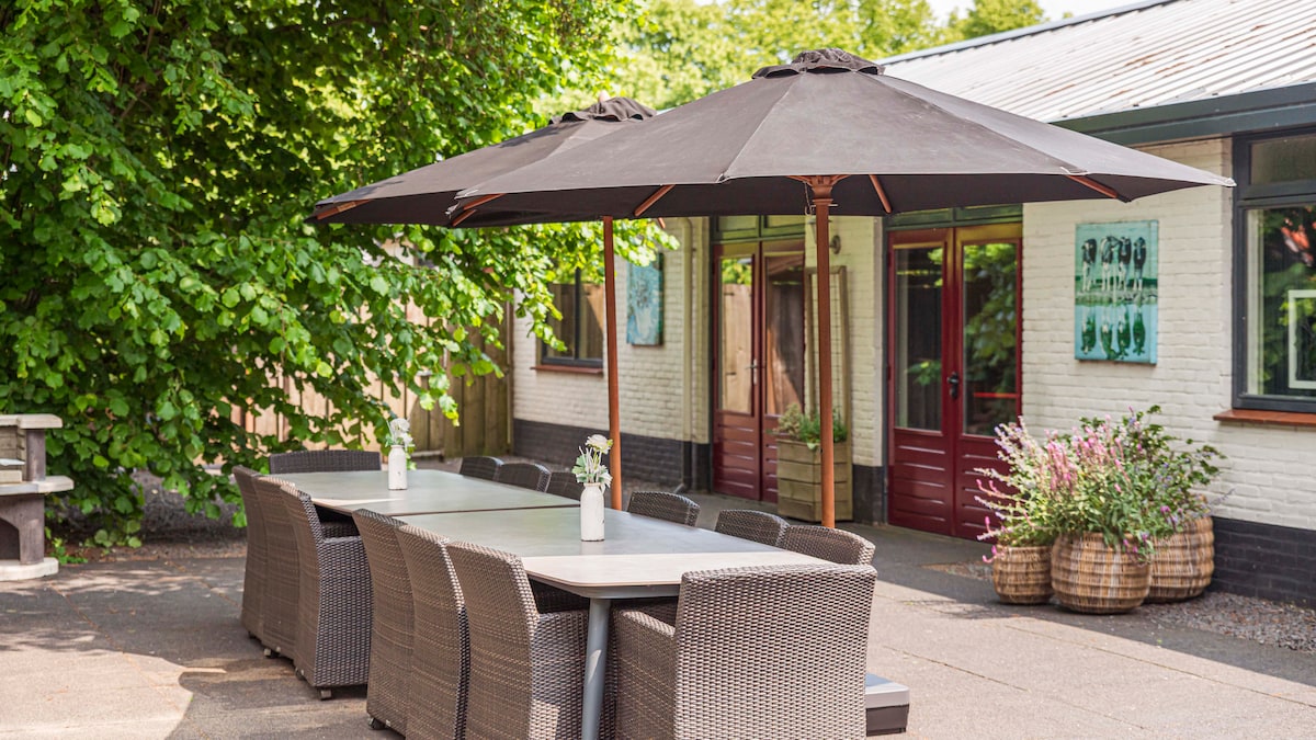 Group accommodation De Schouw offers space for up to sixteen guests with its six bedrooms and five bathrooms. This detached house features a cozy (electric) fireplace, comfortable sitting area with smart TV, an open kitchen, stylish tables and luxurious chairs. The adjacent terrace and sports field with playground offer plenty of space for relaxation. The fenced and lockable outdoor area forms your own private terrace with a BBQ.