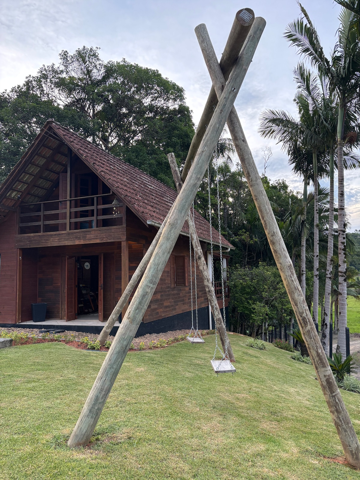 18 km do centro de Pomerode 35 km do centro de Blumenau Relaxe neste espaço calmo e cheio de estilo. Fuja da rotina e hospede-se na nossa charmosa Cabana de Madeira, um verdadeiro refúgio elevado com uma das vistas mais espetaculares da região: de frente para um lago sereno e emoldurado por montanhas. Ideal para casais ou viajantes solo que buscam paz, inspiração e total imersão na natureza sem abrir mão do conforto.