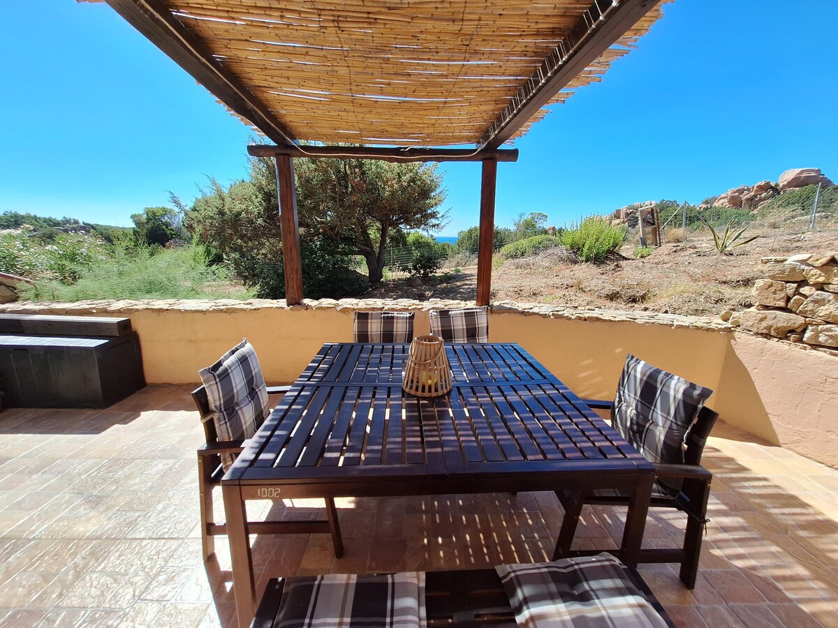 Sea-view cottage-apartment for 2 to 4 people, perfect panoramic sea views from private sun terrace, indoor and outdoor dining. Just 650m from the beach and and close to the pool (NOTE - entry fee and pre-booking reqd. Pls ask before bkg), part of a private coastal residence. Near Isola Rossa, li Canneddi beach (7 min walk - snorkling, beautiful red rocks) & Marinedda Beach (blue flag beach, sandy). Outstanding sea views and west-facing. You enjoy spectacular sunsets that sizzle into the sea.