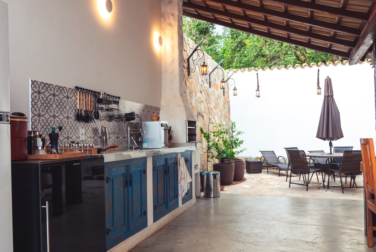 The house is beautiful and full of charm... Thoroughly decorated with care and whim... Close to nature, with an impeccable view of the Minas Gerais mountains and at the same time close to downtown Tiradentes. Backyard, garden, wood stove, fireplace, pizza oven, brand new kitchen utensils, soft and fragrant bedding... are some of the wonders of this house... A stay full of charm, poetry and style.