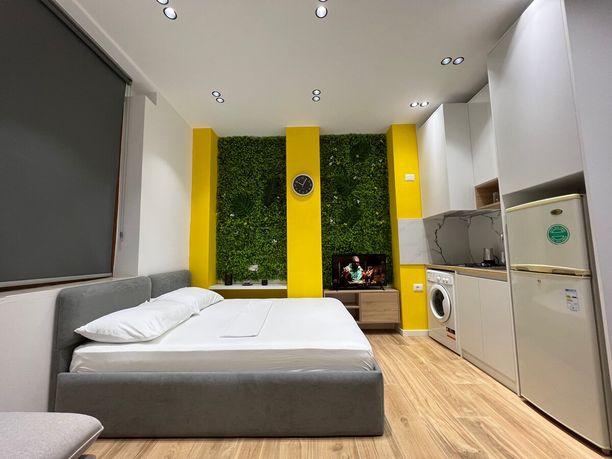 Welcome to our tiny studio ideal for solo travelers looking for peace, relaxation and security. Located in a family neighborhood in Durres, Albania between the city center and the beach. You will love the minimal design, the outdoor space and our superhosting experience. The space Located on the ground floor, in a complex of two similar apartment buildings. Guest access Easy access from the port of Durres Because it is located right across the street! Tirana Airport is a 20-minute drive away.