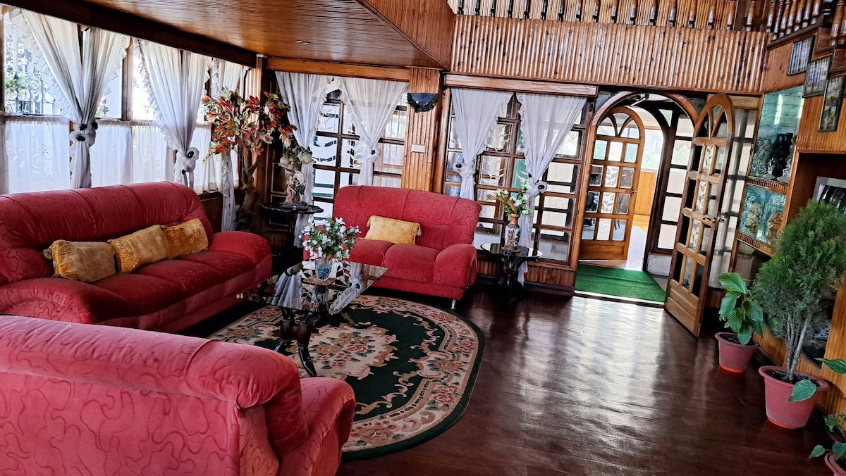 ‘Panorama’ where the last King of Burma’s second daughter spent an idyllic life in exile from 1947 onwards. She lived here with her husband till April 4, 1956. It is a beautiful property with a 180 degree view of the Himalayan range during the months when there is no haze. One can also see the western part of Kalimpong town. It's an almost 100 years old bungalow built during the British Raj. It is well maintained with polished floorboards and red oxide floors and fire places.