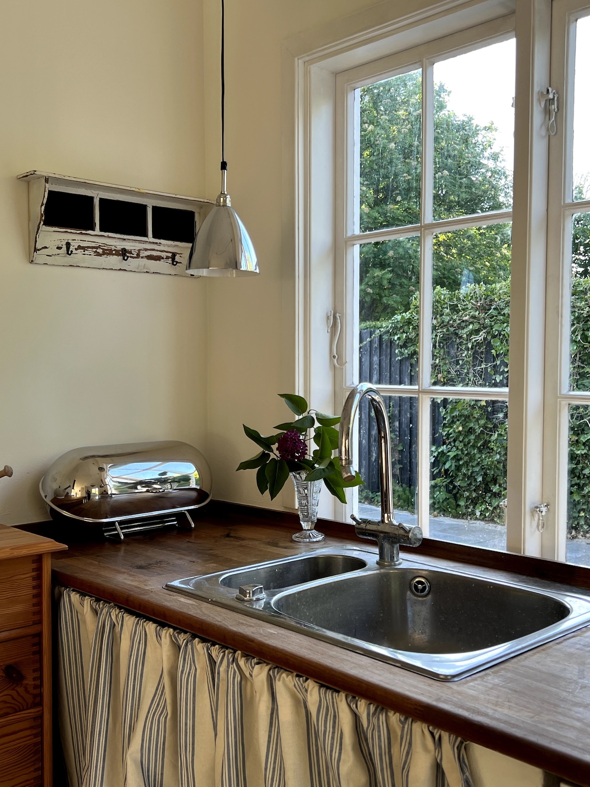 On the beautiful Halsnæs near Lynæs, this unique home is rented out in the middle of a flower garden. It has been newly renovated with respect for the house's 170 years of history, with a new kitchen and bathroom. The house has its own entrance, terrace, parking space and is separate from the rest of the property. There are 4 bicycles available.