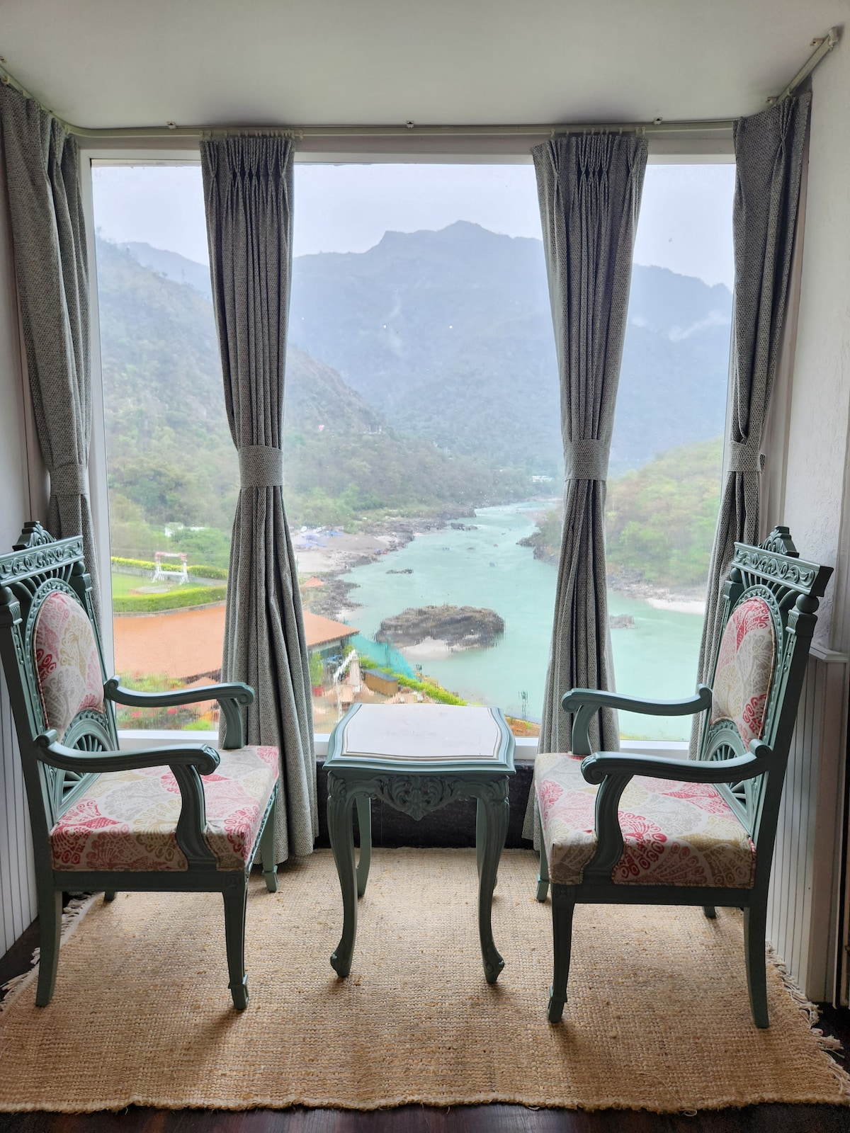 Relax with the whole family at this peaceful luxurious 2bhk newly renovated with stylish bohemian interior apartment with Ganga view & a cute balcony. It is located at the bank of thriver with stunning views of Ganges with beautiful lush green mountains.