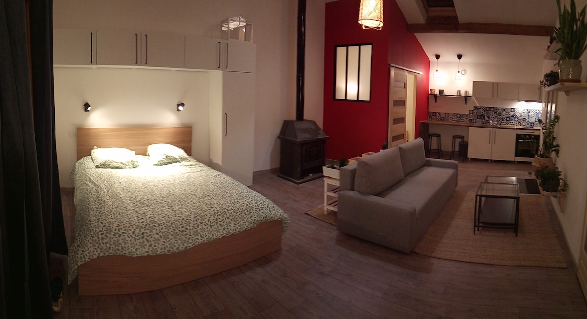 Discover this charming 20m² chalet, nestled in the heart of the vineyards. With an independent entrance, a terrace and a warm interior atmosphere, this place is a great place to relax. We are located between Bordeaux and Saint-Émilion as well as 10min from the blue angel. Also enjoy an optional outdoor Jacuzzi heated all year round for €30, ideal for relaxing. Bed linen (bed made) and bath linen option: €5 per stay.