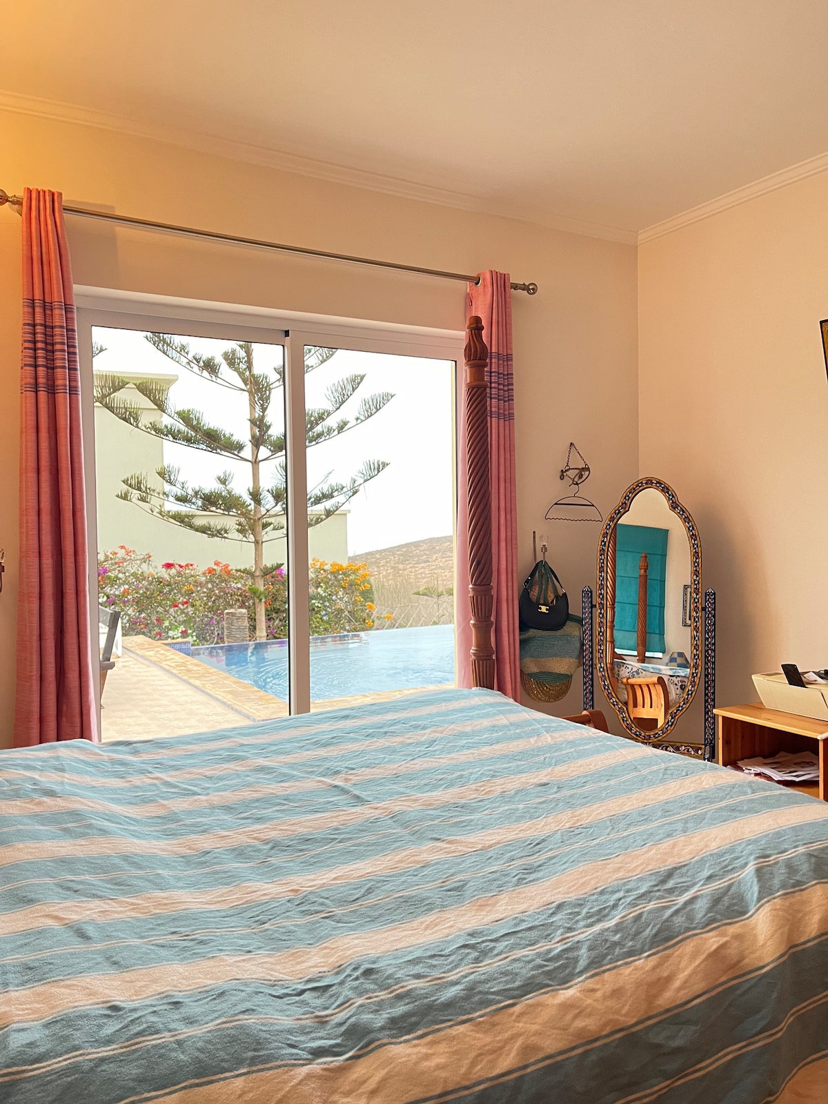 Entre océan et montagne, notre maison offre un moment suspendu dans le temps. Vous aurez la possibilité de faire du surf, du body board et body surf, du parapente, des marches dans la montagne ou le long de l’océan. Nous adorons Aglou et pour entretenir notre maison nous avons décidé d’en louer une partie de temps en temps. Un étage vous est dédié avec une terrasse ainsi qu’un toit terrasse offrant une vue incroyable sur l’océan et le coucher du soleil. Au plaisir de partager avec vous.
