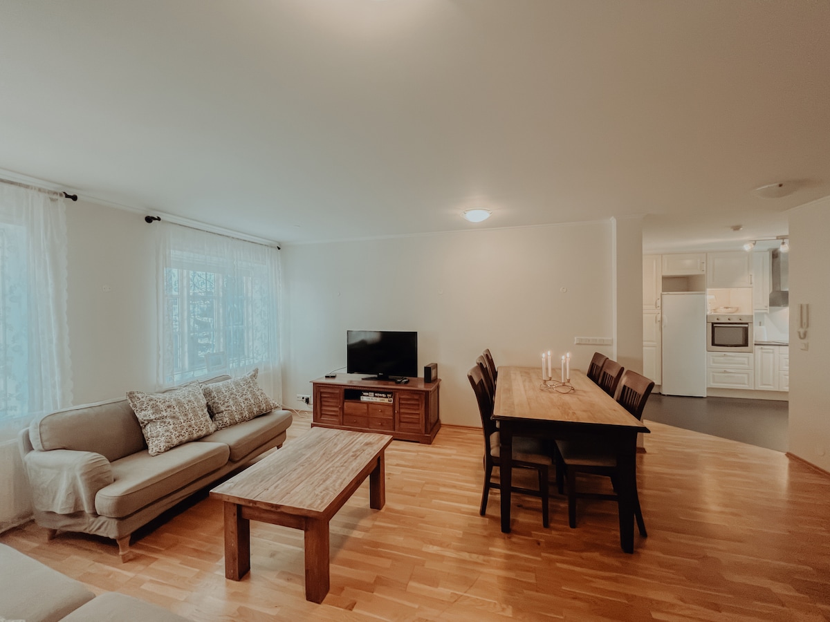 A unique apartment for 4 guest, with nature view and fast Wi-fi. Private entrance, just a 7-minute walk from downtown Húsavík. Located on the lower floor of our family home, with large windows in every room, it’s filled with natural light. Outside you’ll enjoy a private terrace with stunning views of the Húsavík forest and mountain. Inspired by the spirit of the Vikings, the space reflects Iceland’s rich history and nature. We live on the top floor and enjoy to chat with you and help you.