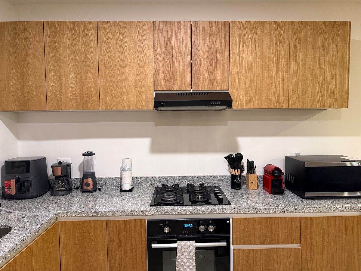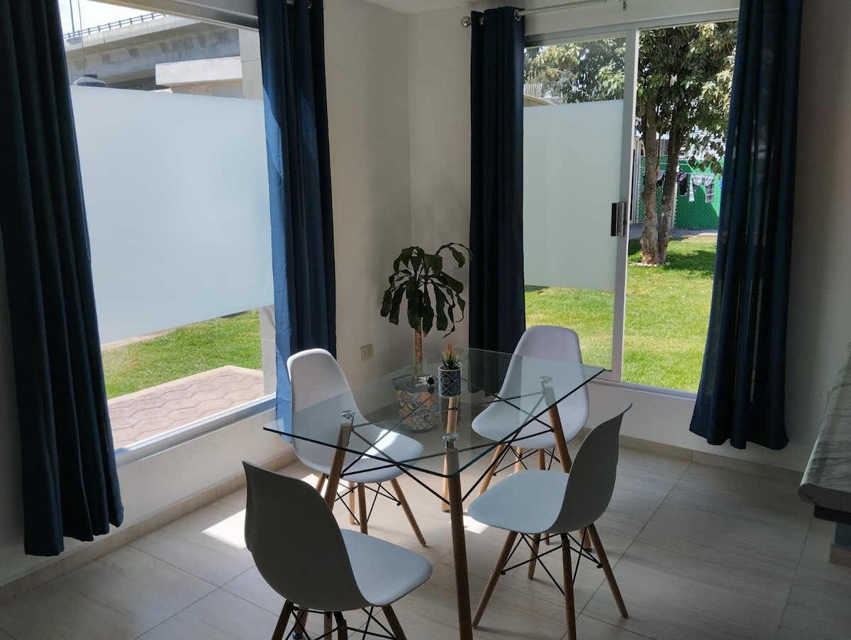 Bright, modern high-rise space on the 18th floor with open city views. Ideal for couples, friends, and relaxed longer stays Rooftop with panoramic view 360°. 3 Queen beds for up to 6 guests Equipped kitchen Large-capacity washer and dryer Electric blinds and high-speed Wi-Fi for home office Enjoy a 24/7 GYM, and in-building parking for 2 cars Pet-friendly building with security service and 24/7 security cameras Quick access to Cholula, Angelópolis, and Val’Quirico