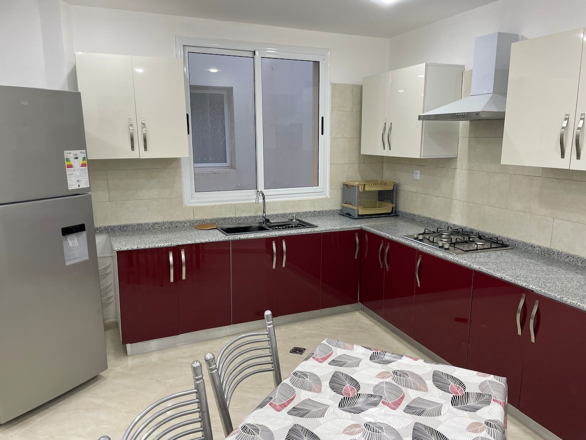 appt new well equipped ( air conditioning,microwave,tv, washing machine etc..) in quiet area 1 km from the beaches, mosque and shops at 100m.