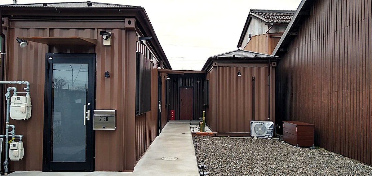 Rooftop terrace container hotel with open-air bath where you can enjoy a private hot spring