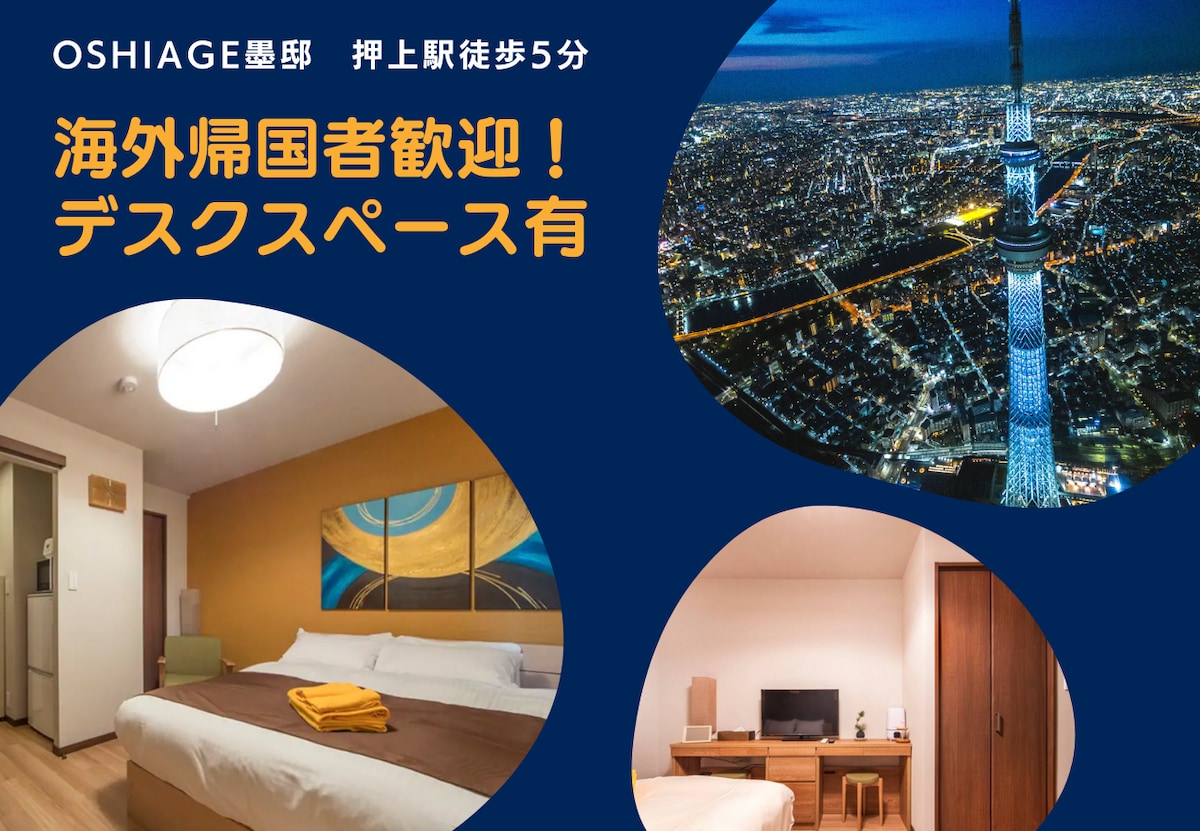 Room 401. Oshiage station 6min, near Skytree, direct access to Asakusa, Ueno, Ginza, Shibuya, Airport.Maximum of 3 people.Luggage storage