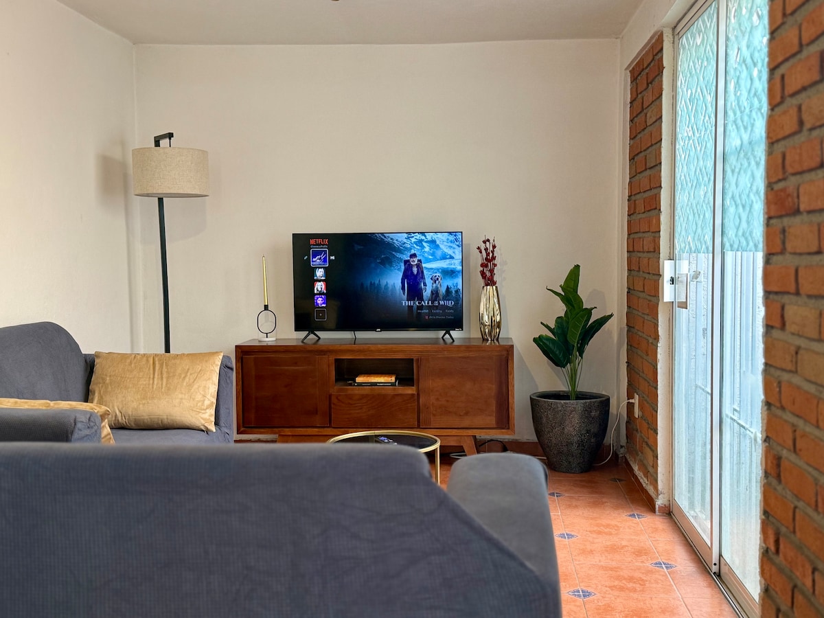 1st level apartment near the airport Located 15 min from the airport and 10 from Toluca galleries and 15 min from the center of Toluca,in a quiet area in a closed street within a property with a garden of 2 thousand mts2 parking included with electric gate and services included, also with garden with aromatic plants for you to prepare your tea in the morning