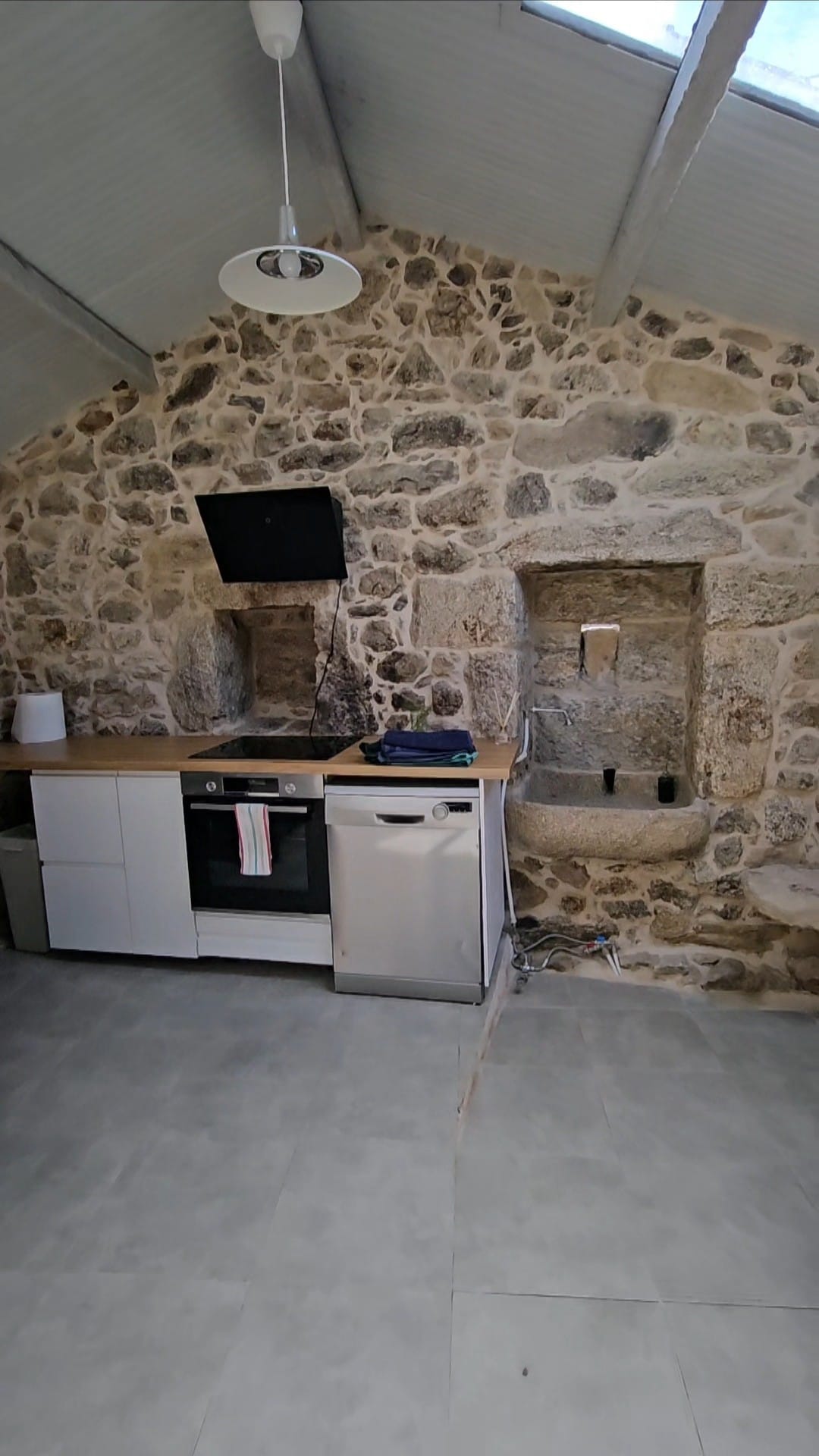Loft-style apartment. It has a bedroom with a double bed, a living room – kitchen, a bathroom and a dressing room. TV, washing machine, dishwasher, air conditioning (climatizer), pellet fireplace, WIFI and whirlpool bathtub. Located in a rural setting, quiet and very well connected with the accesses to the Salnés highway and AP 9 highway, which connect O Mosteiro with the main cities and towns of the Rías Baixas. Ideal for couples and singles. A car is recommended to get around.