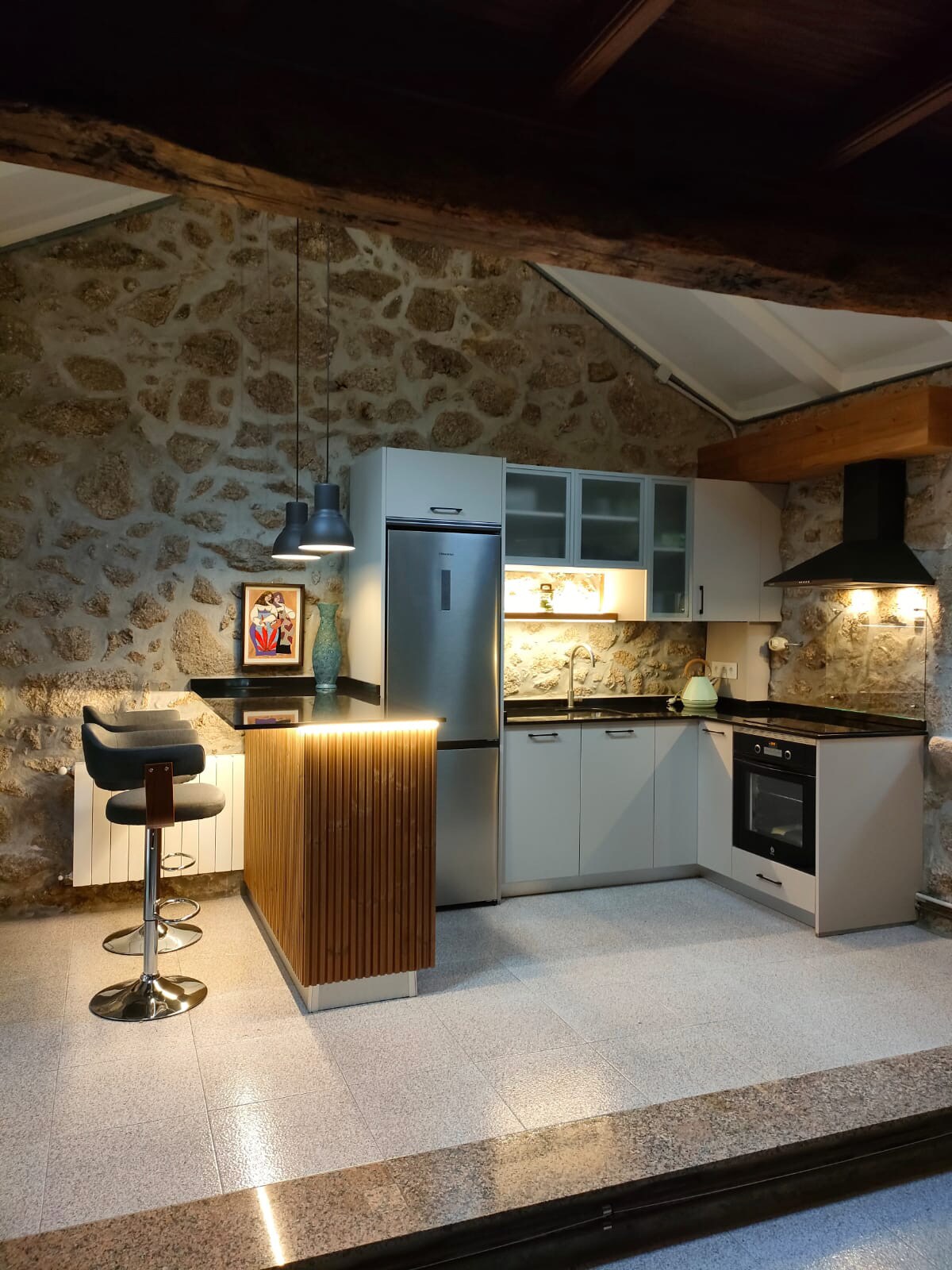 Enjoy your vacation in a restored house ideal for families or couples. With two bedrooms, two bathrooms, one with a corner bathtub, a fully equipped kitchen, a living room and a relaxing terrace in the garden with a great barbecue. Includes free Wi-Fi. You can check in independently or hand over the keys in person.