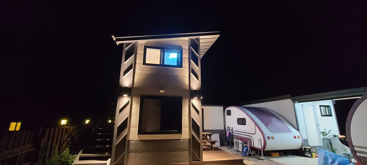 Hi. We are Onda, a company that researches and provides a variety of relaxation spaces. We hope that everyone who will stay here will have a comfortable and happy time. [Accommodation Introduction] This accommodation is a rooftop private pension + caravan type accommodation located in Eobang-dong, Gimhae. [Room type] Pension room: 1 living room + 1 kitchen + 1 bedroom A (double 1) + 1 toilet Caravan: Studio type (Double 1) * Bedding is provided according to the number of people you booked.