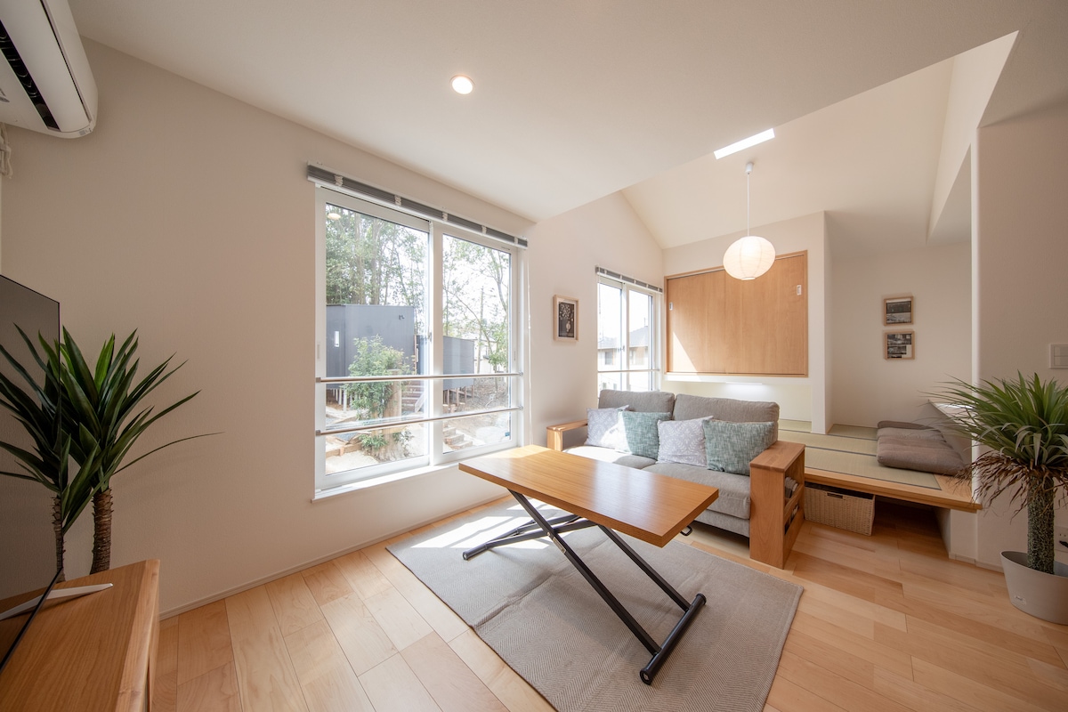 Modern Japanese house with special lighting/3300 m² mixed wood garden/BBQ tool rental available for a fee/Simmons beds/