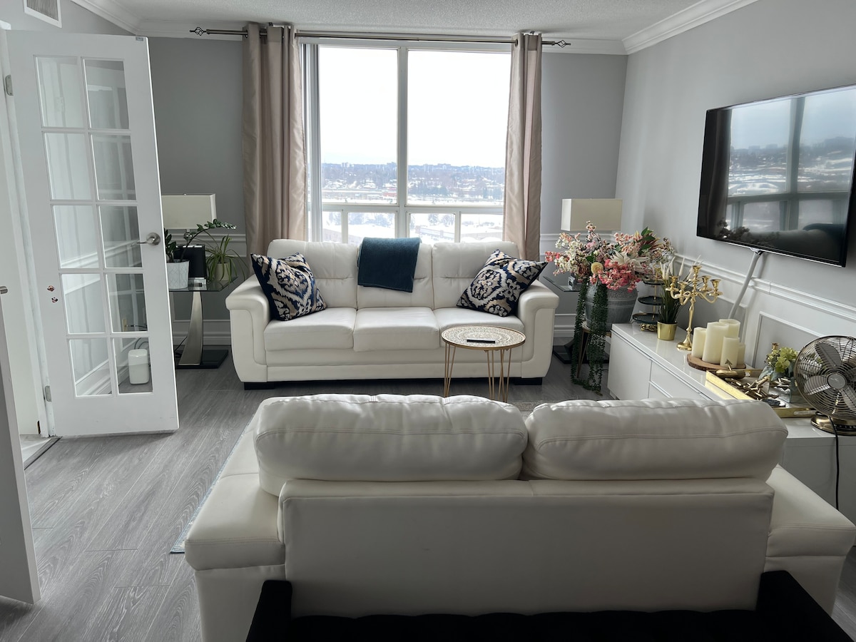 We welcome you to stay at our luxury suite that is perfect for a vacation retreat, visiting family/friends or for a business trip. Enjoy your own in-suite café, sauna, and fireplace. Our serene space will leave you relaxed from the very start to the end of your stay. There's plenty of room for yoga or stretching. Located just walking distance to Pickering’s beautiful waterfront, minutes to HWY 401, shopping, restaurants, and the GO Train Station that can take you to Downtown Toronto & more!