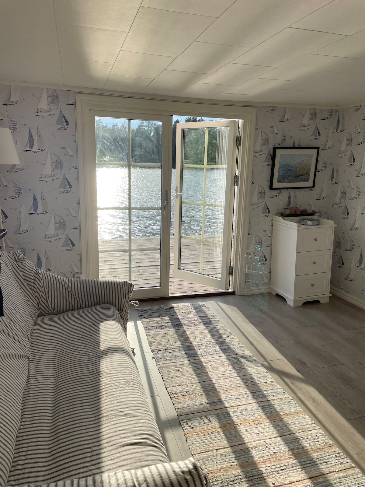 Slappna av i detta unika och lugna boende. Direkt vid sjön Sommen ligger vårt nyrenoverade lilla hus med sovrum, allrum och ett litet kök. Uteplats under tak, brygga och strand direkt utanför. Sommarvatten vilket innebär varmt o kallt vatten från sjön i kökskranen och i toahuset. Separat hus med duschkabin, handfat och eldriven förbränningstoalett. Färskvatten hämtas lätt hos värden. Sänglinne och handdukar ingår. Städning ingår ej. Alla gäster städar efter sig, all utrustning finns i stugan.