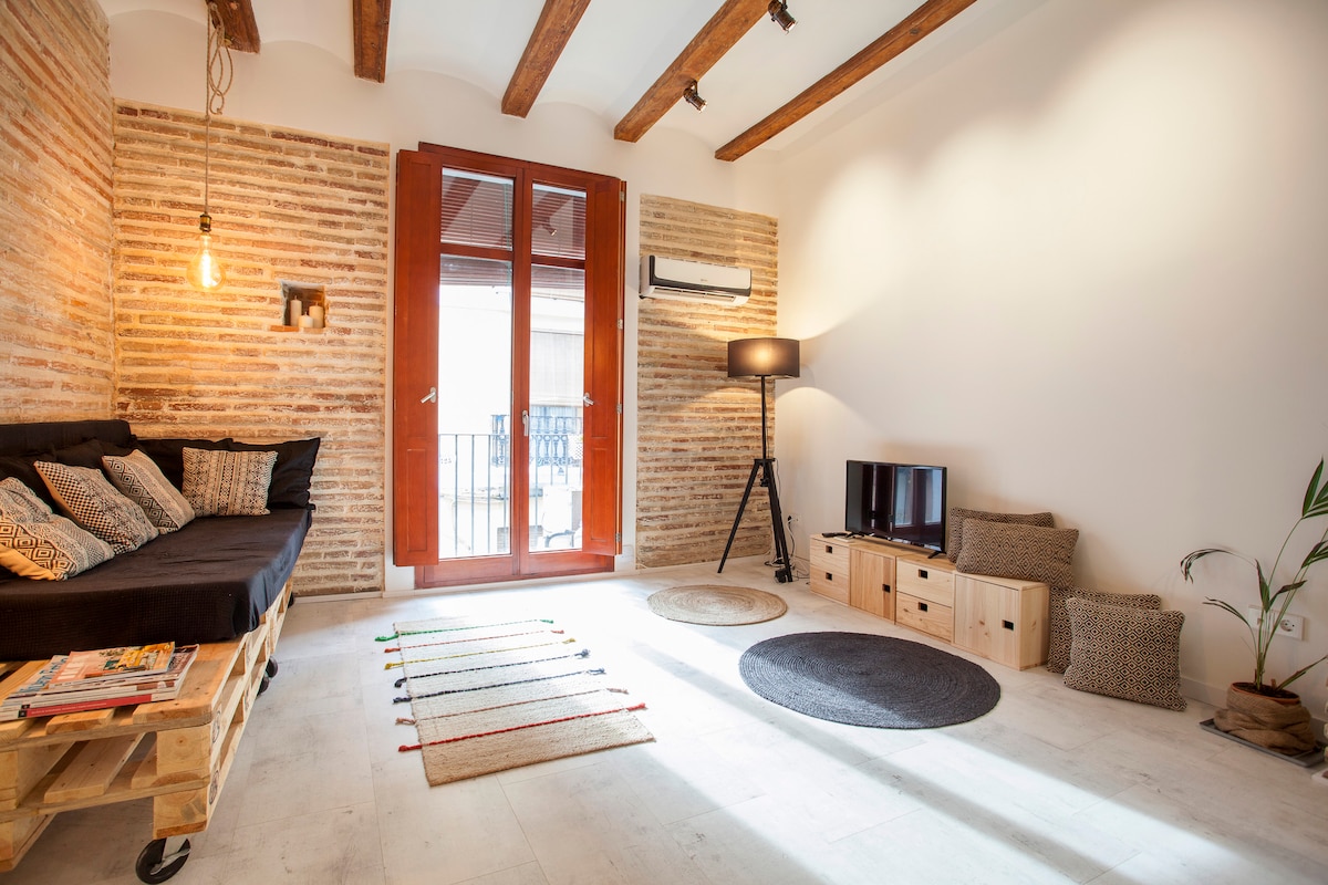Cozy Loft in Valencia's Ciutat Vella, air conditioning, free WiFi, TV (VODAFONE and HBO). Excellent location, between 5/15 minutes from the Central Market, IVAM, Cathedral, Turia Garden, North Station, Talia Theater, Museum of Fine Arts. In the Carmen neighborhood, shopping and leisure area. Close to bus lines, 20 minutes from the metro station (L5 direct connection to the Airport). Registration: ESFHTU00046050003906910010000000000OVT-45329-V9 / License: VT-45329-V