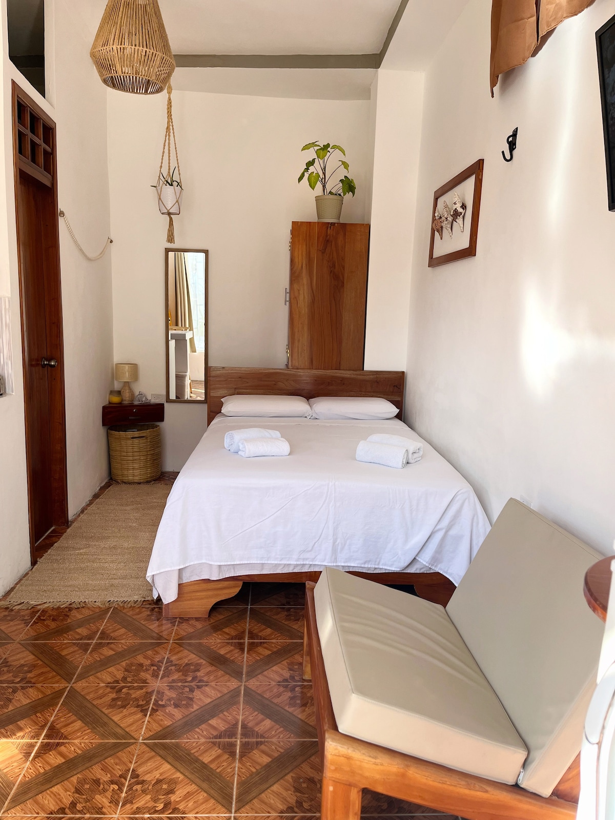 Sunshine filled, bright garden suite, next to the entrance to the Galapagos National Park and the Charles Darwin Station, and a few blocks away from some of the best restaurants, art galleries and bars in town. Located on the far end of one of Puerto Ayora's main streets, accessible to the road but removed enough to be isolated from the urban noise. An AC cools the suite when needed in the warmer months, and it’s screened windows are the alternative as well .