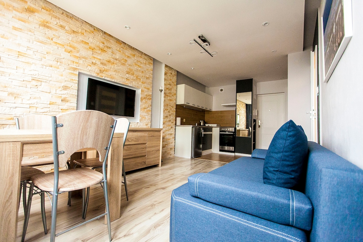 Discover our spacious, ultra-modern and spotlessly clean apartment, freshly renovated. Perfect choice for 4 guests - couples or small families. Features a spacious bedroom, fully equipped kitchen, and modern bathroom. Bright interiors, keyless access, and fast WiFi. Old Town accessible by walk or excellent public transport. Quiet area with free parking available