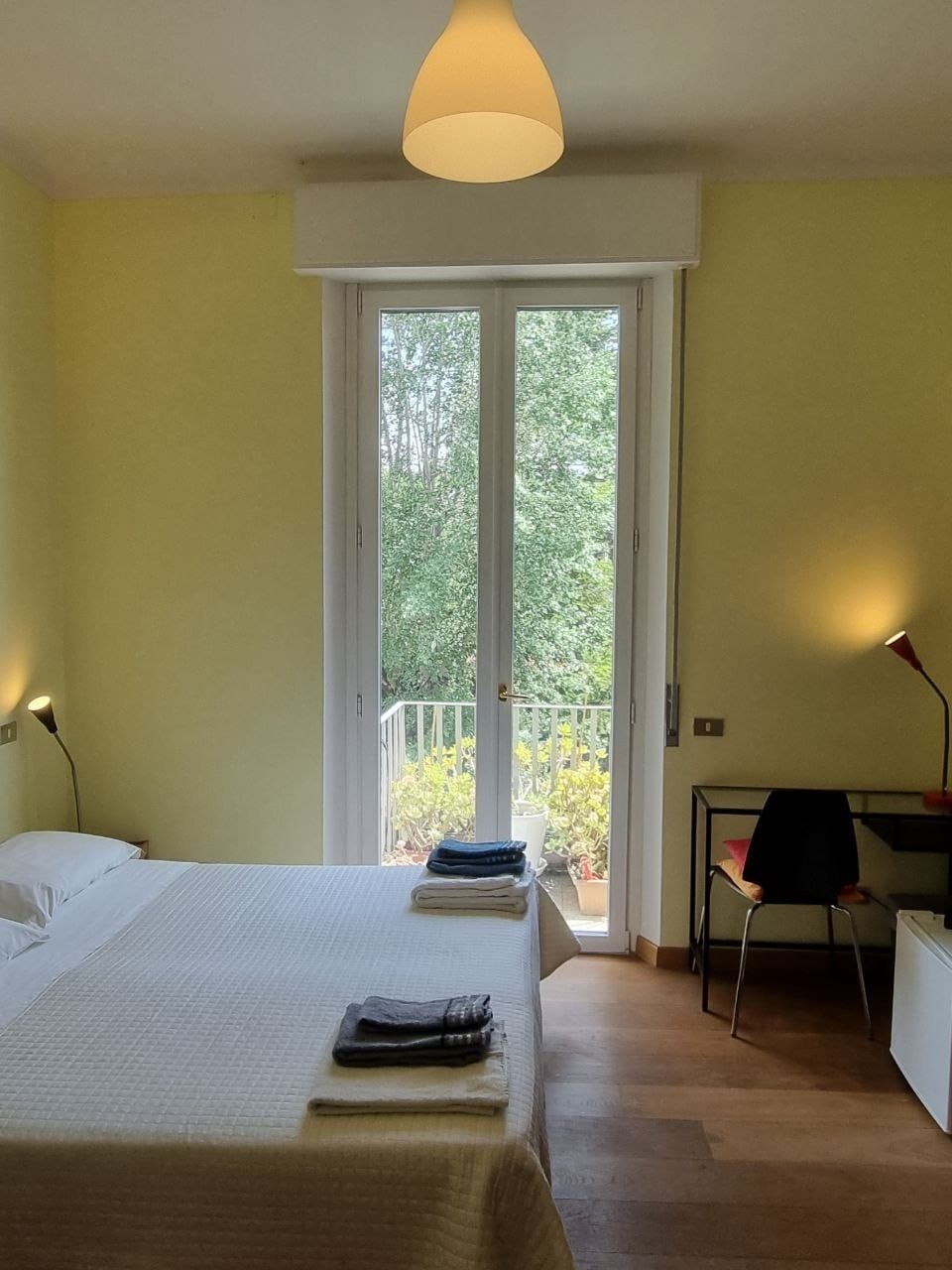 An old tower house in the heart of Pisa. A fully equipped stainless steel kitchen with espresso machine and kettle. The interiors blends wooden beams, steel and glass with a swinging hammock, designer lamps, a turntable and an extensive library of art and illustration books. The bedroom is accessed via an internal staircase, while the apartment is located in the attic (3rd floor) of a historic building: the staircase is a bit steep, so unfortunately it may not be comfortable for everyone.