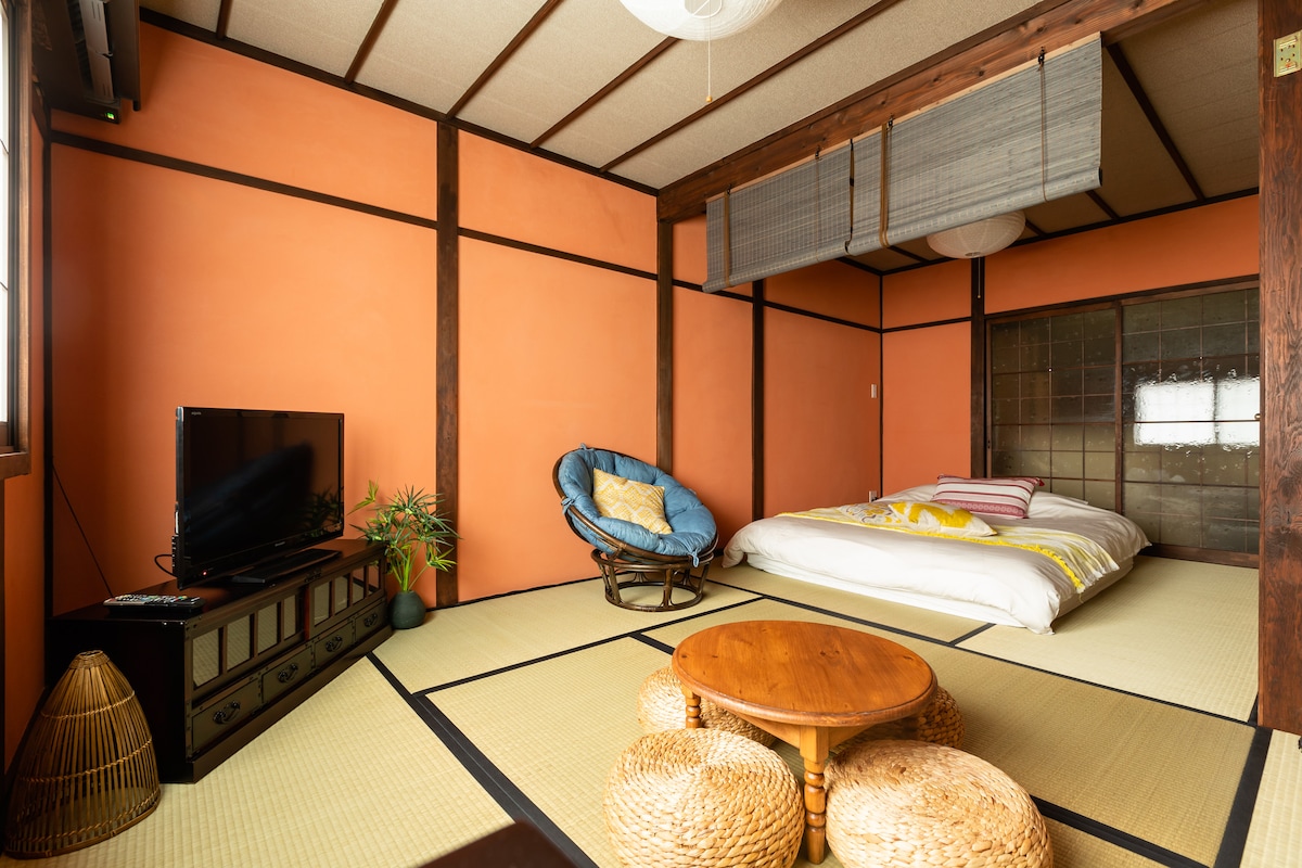 Rather than a rest from your holiday, this is a place intended be a restful highlight of your vacation experience. Traditional shikui plaster walls, exposed wooden beams, cypress floors, shoji paper screens, morutaru bathroom, and a tatami bedroom. Renovated by your host, a designer & woodworker living in Osaka. 5 mins walk from Noda hanshin/ Ebie stations: direct access to Umeda / Osaka station (4 mins) and Namba (9 mins).